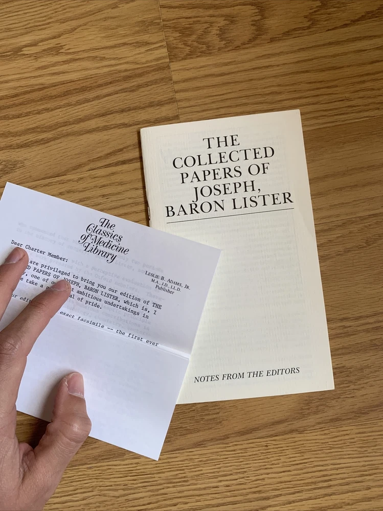 The Collected Papers of Joseph Lister, Classics of Medicine Library, 2 vol set.