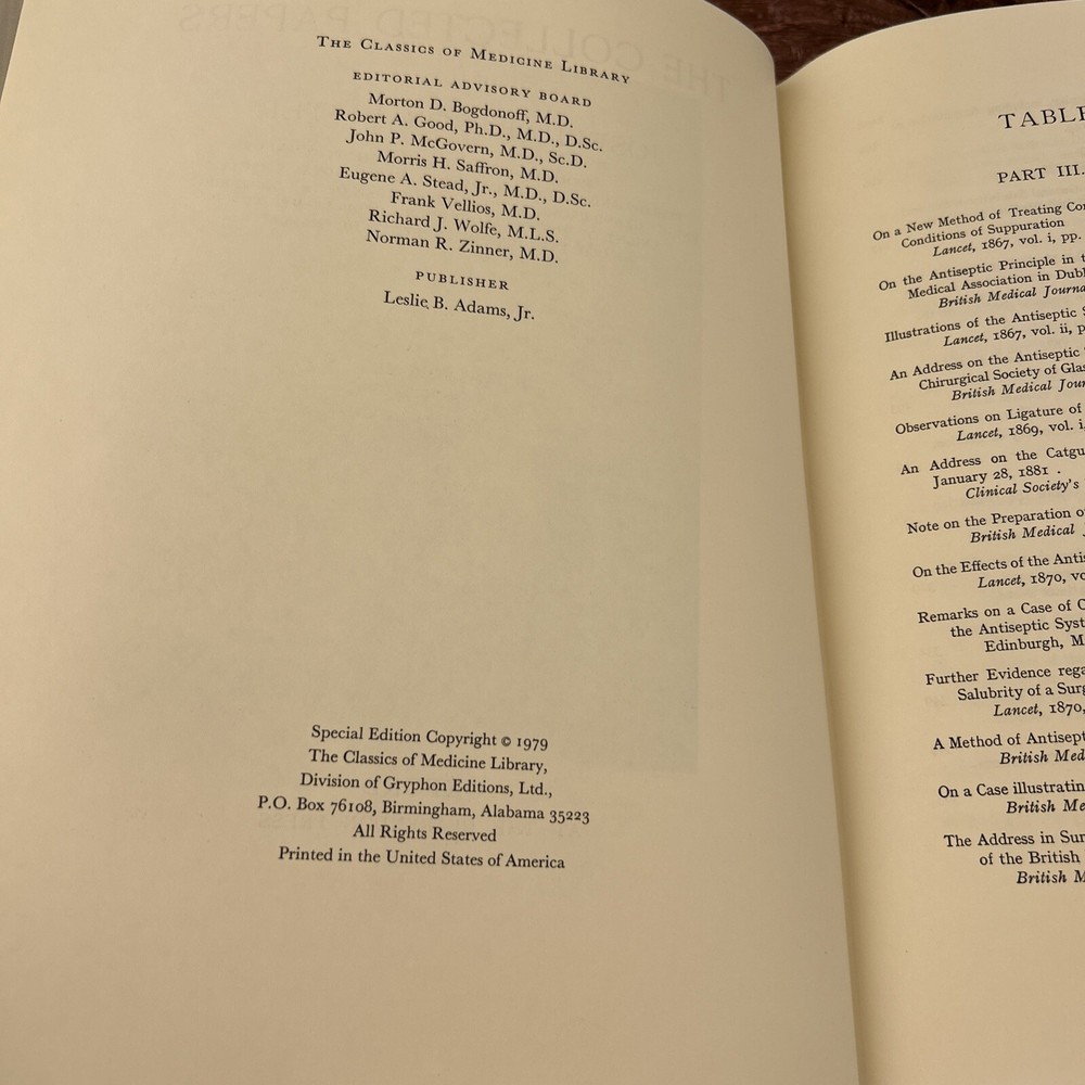 The Collected Papers of Joseph Lister Vol 2 Only Special Edition #5209. Shipped with USPS Media Mail....