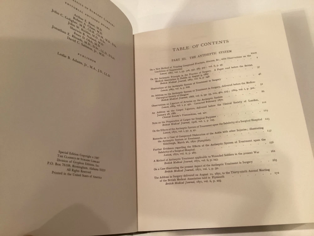 The Collected Papers of Joseph Lister Volume 2 By Joseph Baron Lister Classics of Medicine Library Special Edition - Gryphon Editions 1987 Reprint of 1909 Printing Leather Binding Gilted Title Lettering on Spine/Front&Back Boards Gilted Page Edges Very Good Condition Tight and Square Binding Ribbon Book Mark Beautiful Boards 589 Pages Excellent Collectible Look Out For My Other Gryphon Editions For Sale! Willing to Combine Shipping Feel Free To Ask Questions Same Day Tracking Fast Shipper and Careful Packager!!!