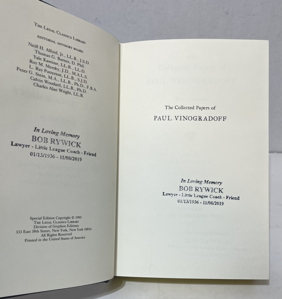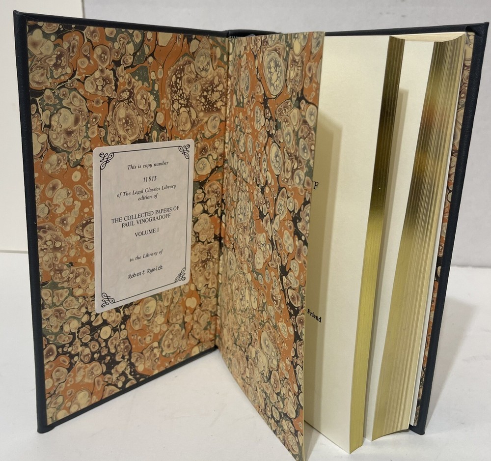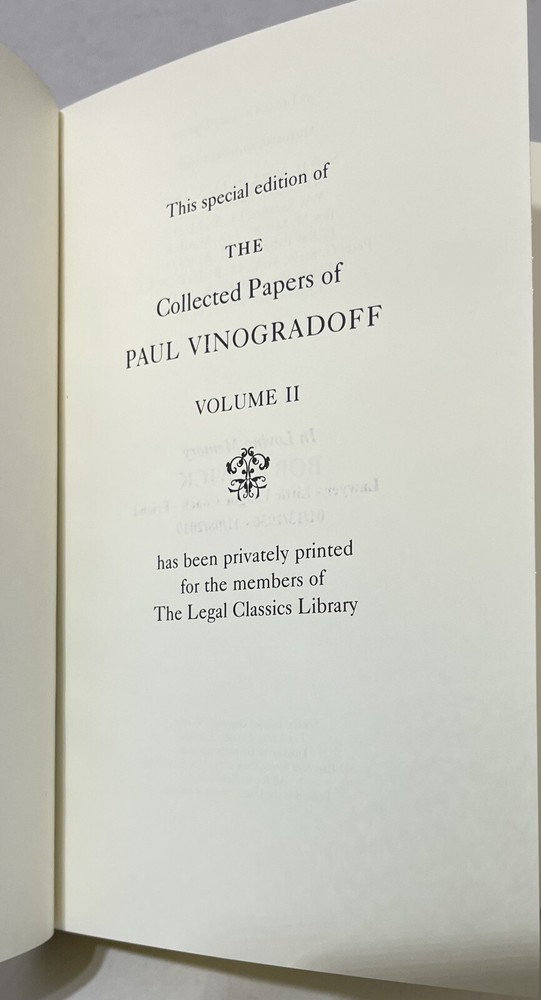 This is a rare and valuable collection of Paul Vinogradoff's historical works, published by Legal Classics Library. The leather bound volumes are filled with fascinating articles and papers on various historical topics. Written in English, these special editions are a must-have for any history enthusiast. The second volume of this set is particularly noteworthy, as it contains a variety of unique and informative articles. The binding is sturdy and the pages are clean, making this a great addition to any collection. Don't miss your chance to own a piece of history with this amazing collection of Paul Vinogradoff's works.