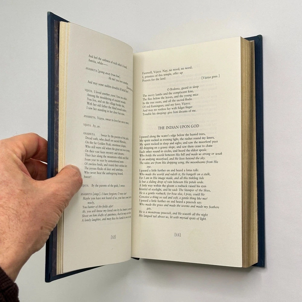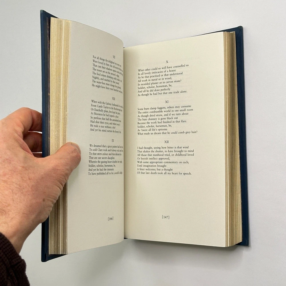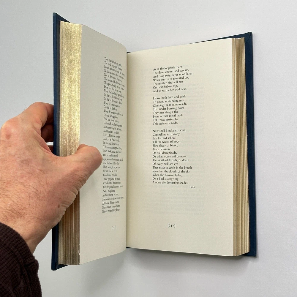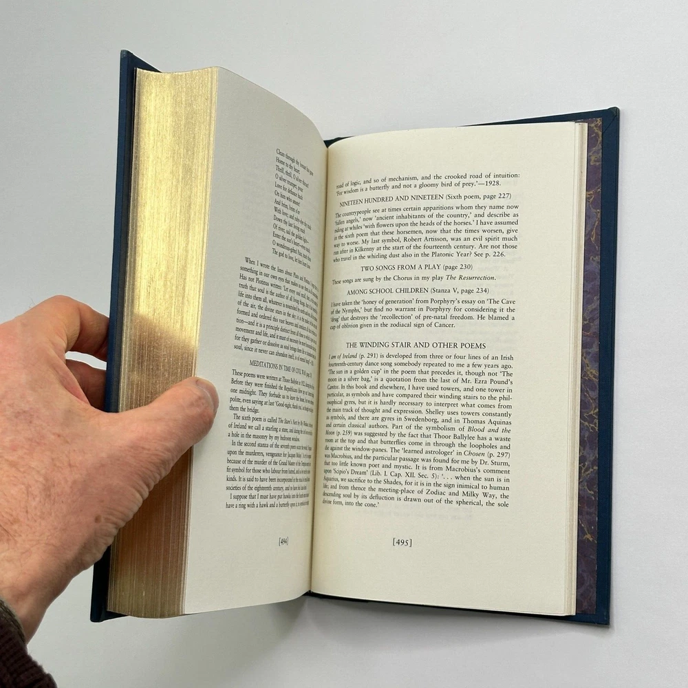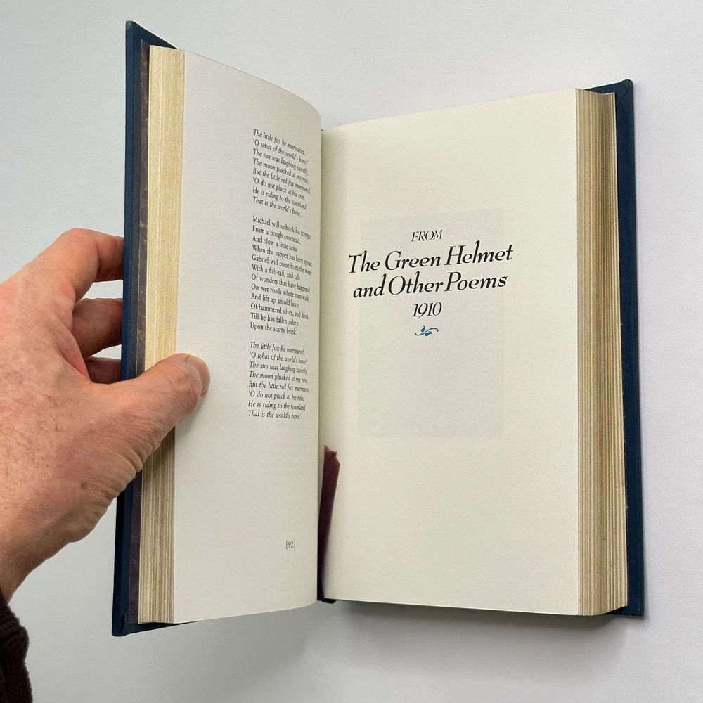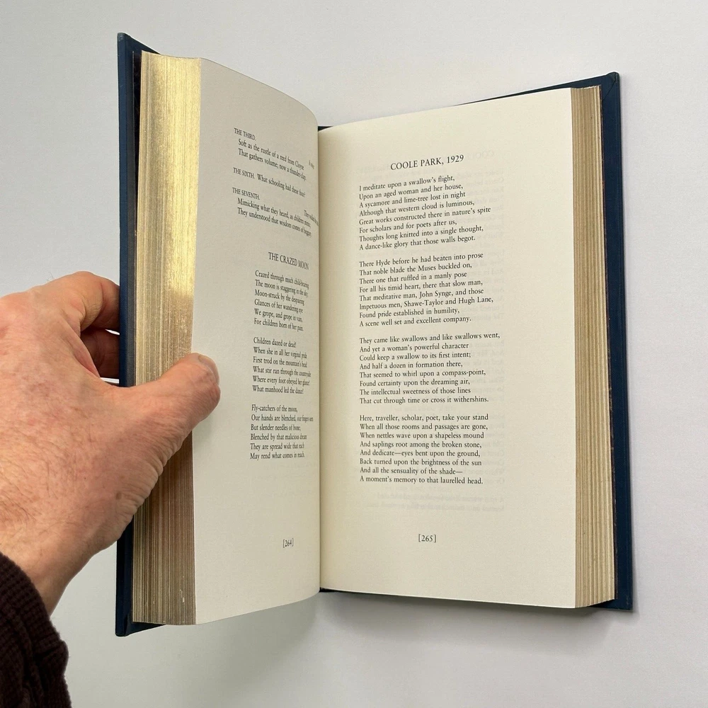 "The Collected Poems of W. B. Yeats" The Oxford Library of the World's Great Books 1983 Oxford University Press Quarter Bound Size: 6.5" x 9.5" Condition: Clean boards and spine; light shelf-wear at bottom edge and corners. Clean text block; top and bottom gilt edges faintly scuffed as shown. No foxing, staining, markings or highlights within. Reading ribbon faded at end. No scent. This collection includes all the poems authorized by W. B. Yeats for inclusion in his standard canon. It spans the entire arc of his career, from early works inspired by Irish myths and legends to later poems reflecting on youth, old age, and national identity. See pictures for condition references and please ask any questions before purchasing! ----------- Orders are carefully packed and shipped in boxes. Books are shipped using USPS Media Mail and represent the best available rate. Orders placed before 2pm ET are shipped the same business day, unless we are away sourcing additional inventory. We combine shipping on orders with multiple items. To request combined shipping, select the option at the top of your shopping cart screen. We'll then send you an invoice with the updated shipping total. Alternatively, you can proceed to check out as usual, and we will refund any additional shipping costs.