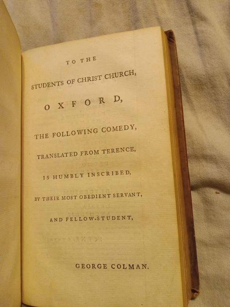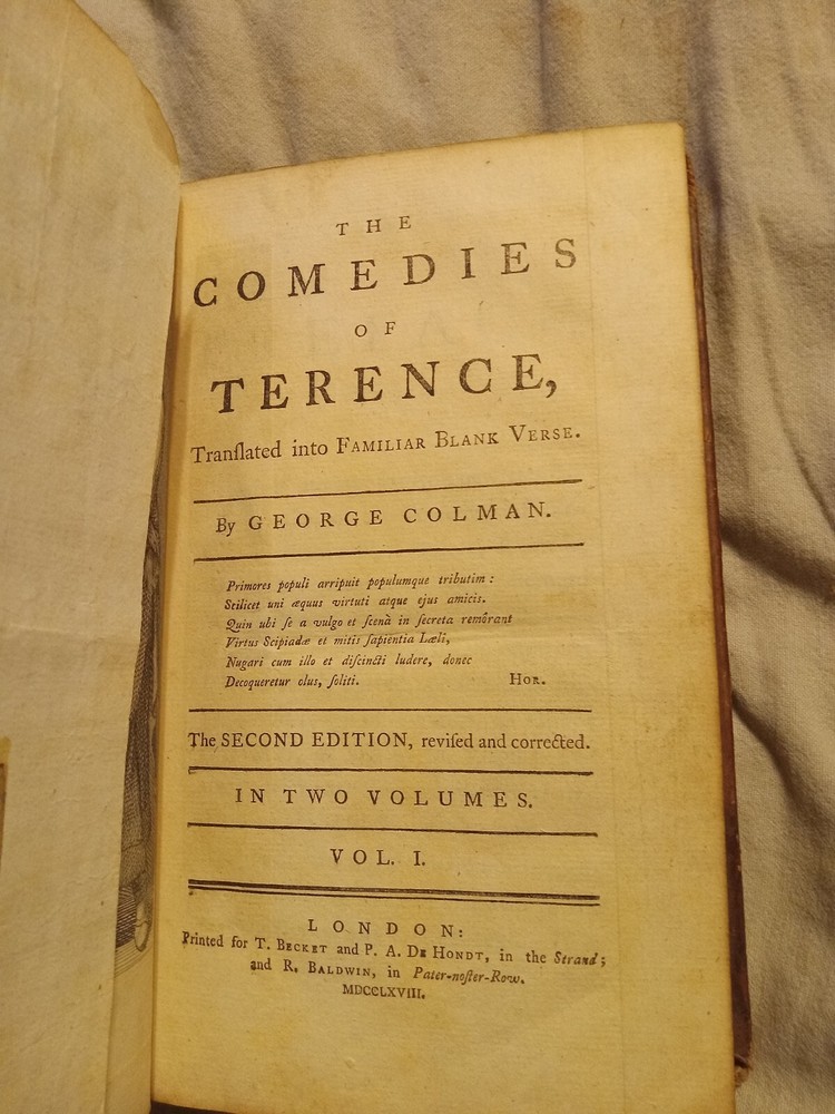 The Comedies Of Terence George Colman 1768 two vol set 2nd edition. In very good condition please see photos