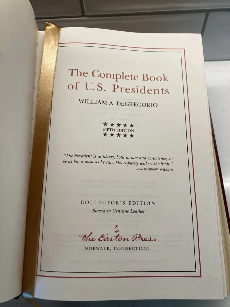 The Complete Book of U.S. Presidents by William A. Degregorio/ Easton Press. Condition is Very Good. Shipped with USPS Media Mail.