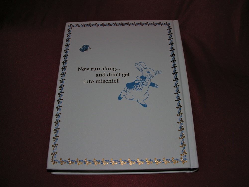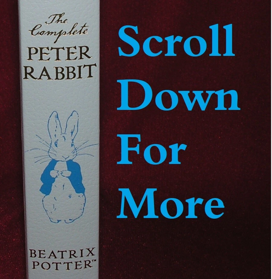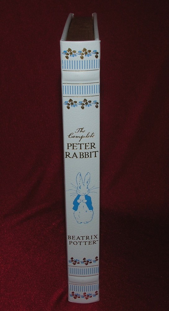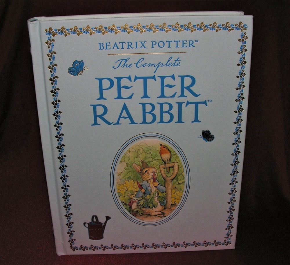 The Complete Peter Rabbit By Beatrix Potter ~ New Illustrated Leather Bound The Complete Peter Rabbit By Beatrix Potter New Illustrated Leather Bound Click image to enlarge Description The Complete PETER RABBIT ~ By Beatrix Potter ~ ~ Illustrated ~ ~ Leather Bound Collectible Edition ~ ~ Gilt Highlights & Page Edges ~ This complete and unabridged collection contains all 23 of Beatrix Potter's Tales in one deluxe volume with all their original illustrations. The stories are arranged in the order in which they were first published so they may be read in their proper sequence. A special section at the end of this volume contains four additional works by Beatrix Potter that were not published during her lifetime. -NEW SEALED COPY- Images sell! Get Supersized Images & Free Image Hosting Create your brand with Auctiva's Customizable Templates. Attention Sellers - Get Templates Image Hosting, Scheduling at Auctiva.com. Track Page Views With Auctiva's FREE Counter