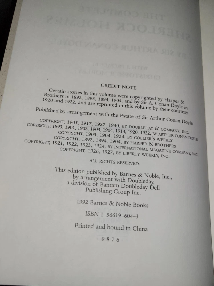 | Book Title | The Complete Sherlock Holmes |