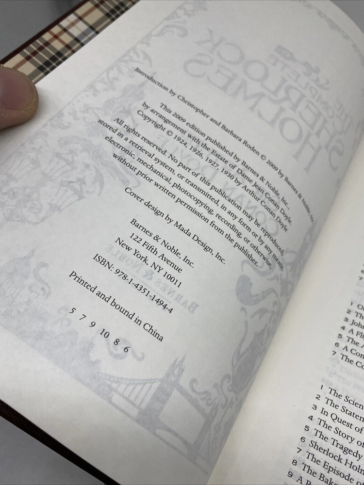 The product is a hardcover edition of "The Complete Sherlock Holmes" by Sir Arthur Conan Doyle, published by Barnes & Noble in 2009. This collection includes all the stories from the Sherlock Holmes series in English language. The book is bound in faux leather, making it a stylish addition to any bookshelf. With its comprehensive content and classic author, this edition is sure to be a beloved addition to any book lover's collection.