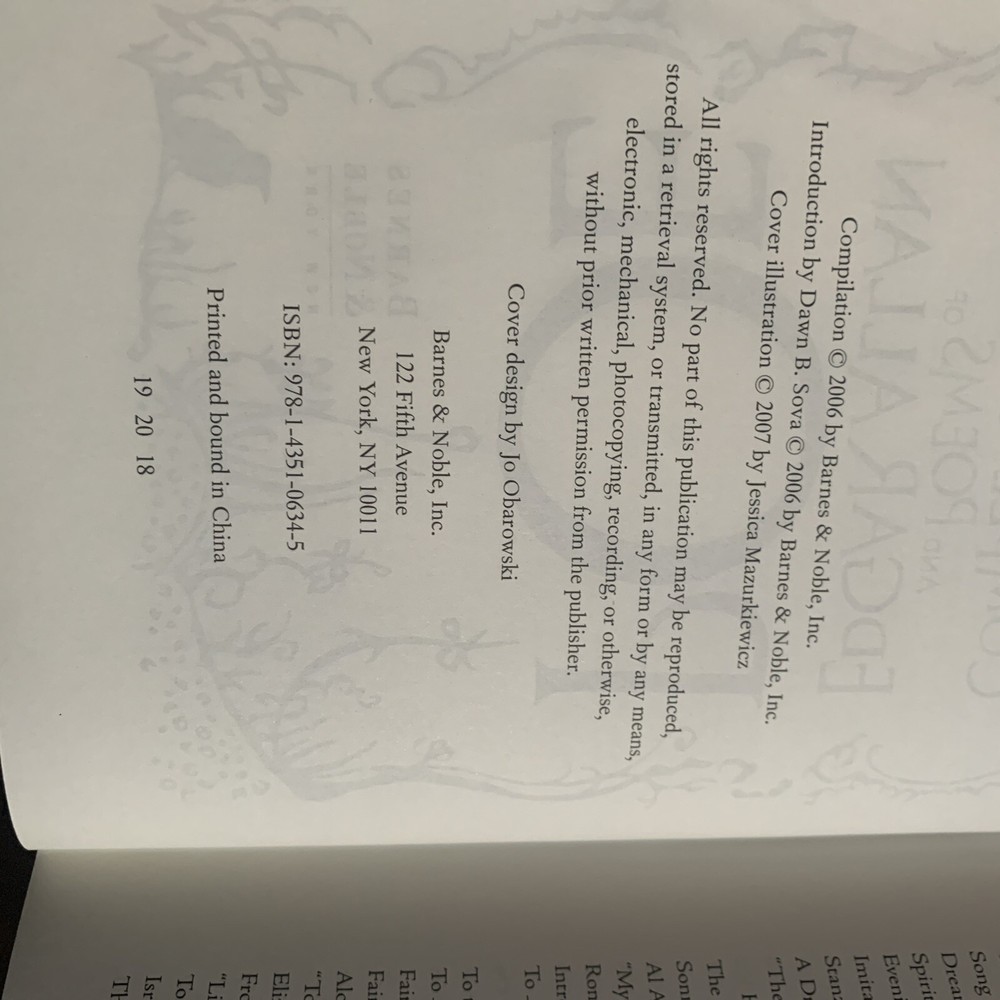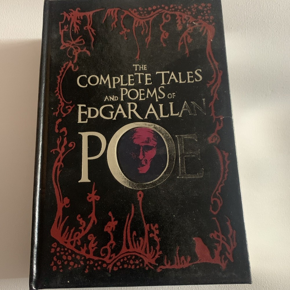 The product is "The Complete Tales and Poems of Edgar Allan Poe" published by Barnes & Noble in 2007. This collector's edition anthology features works by Edgar Allan Poe, a renowned author in the horror genre. The book is a leather-bound hardcover containing a selection of Poe's fiction narratives, intended for both young adults and adults who appreciate classic literature. With no personalization or ex libris markings, this edition is a valuable addition to any book collection for fans of Poe's macabre and eerie storytelling.