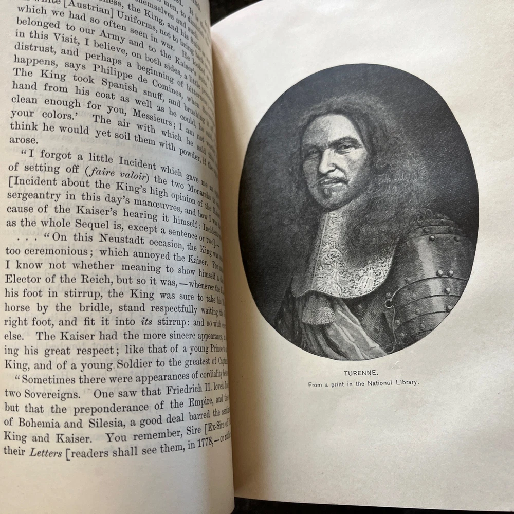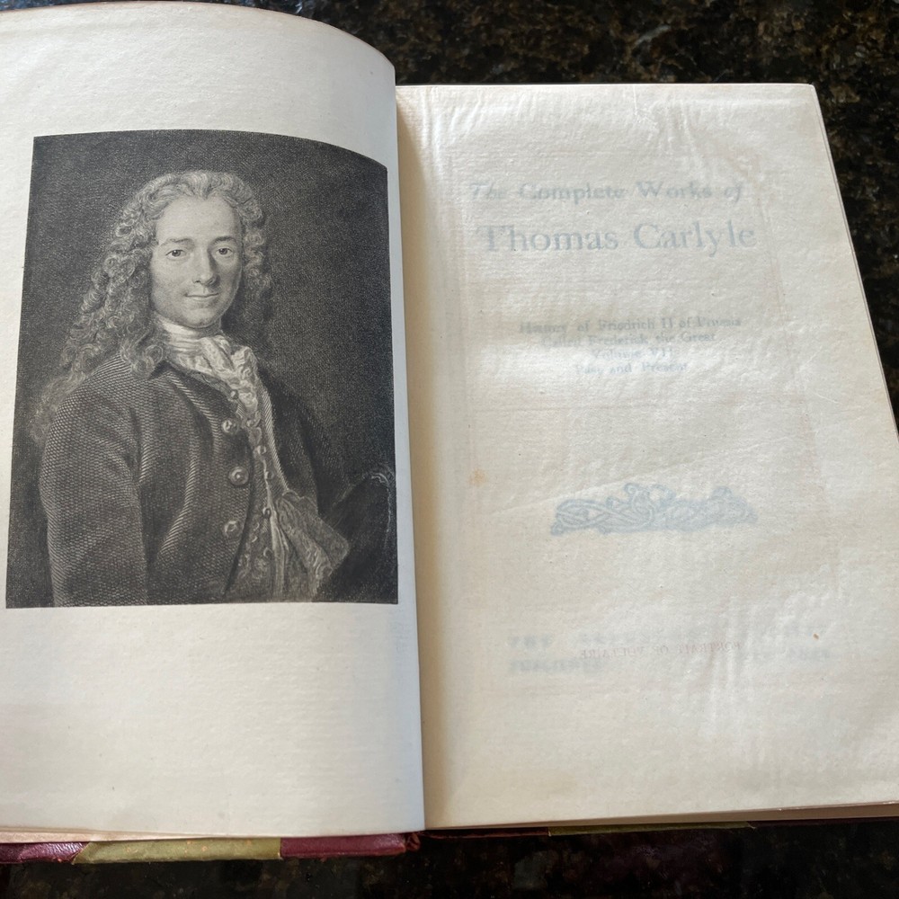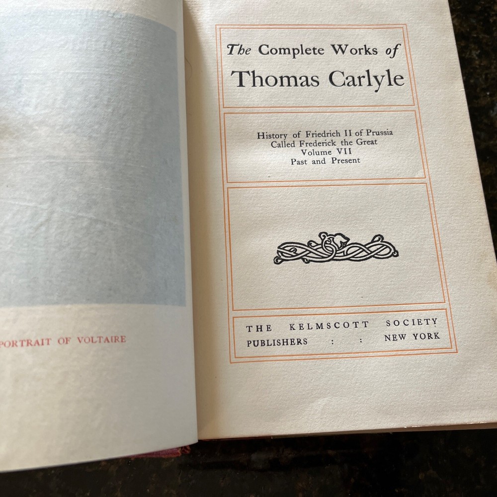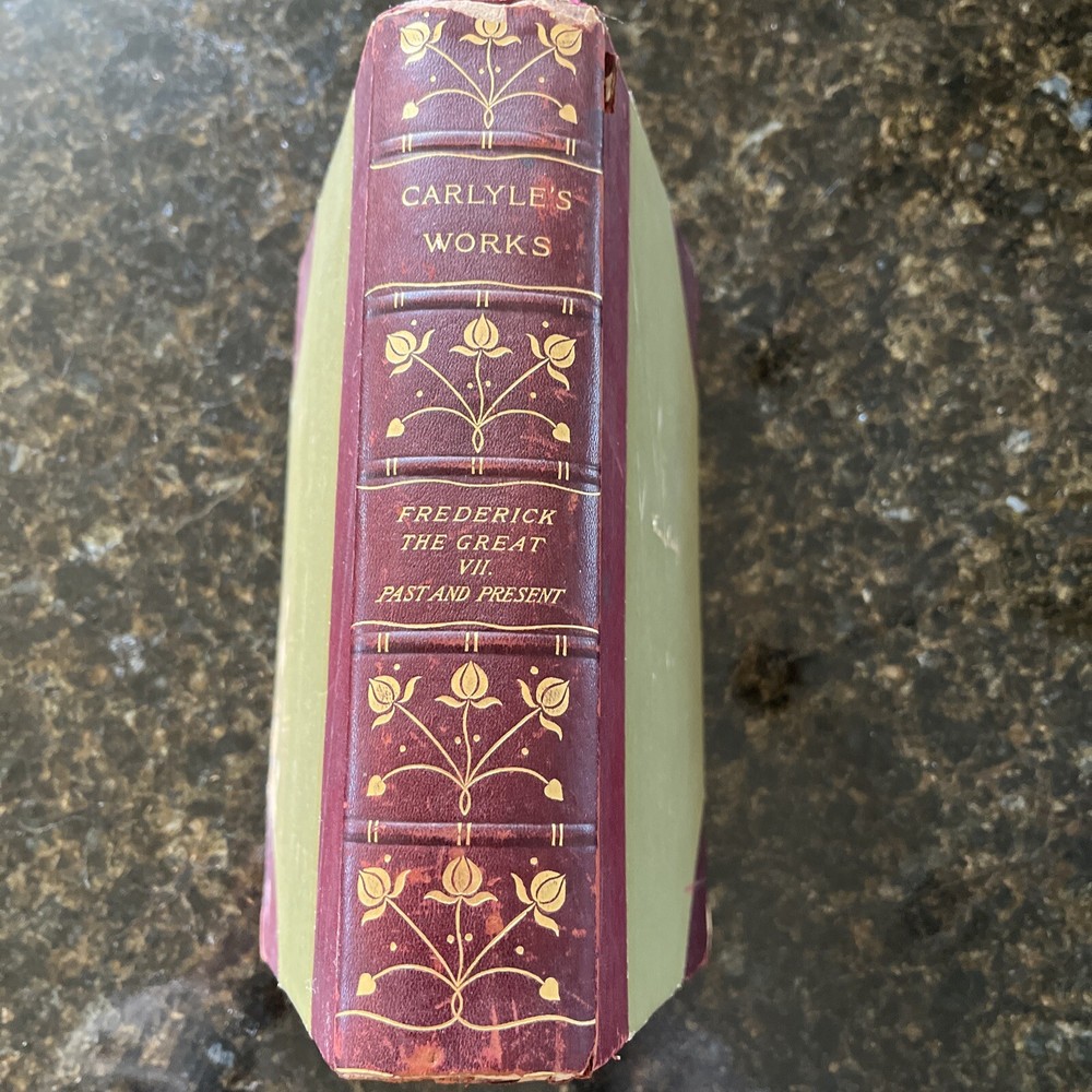 This is the seventh volume of the complete works of Thomas Carlyle, published by The Kelmscott Society. There is no date printed but assumed to from early 1900s. It contains the story of Friedrich II of Prussia, illustrated with images from an unknown artist. The binding is made of high-quality leather, and the pages are in their original form as an original print. This book is a great addition to any collection of antiquarian and collectible books, and a must-have for fans of Thomas Carlyle's work. It is written in English and was printed in New York, United States.