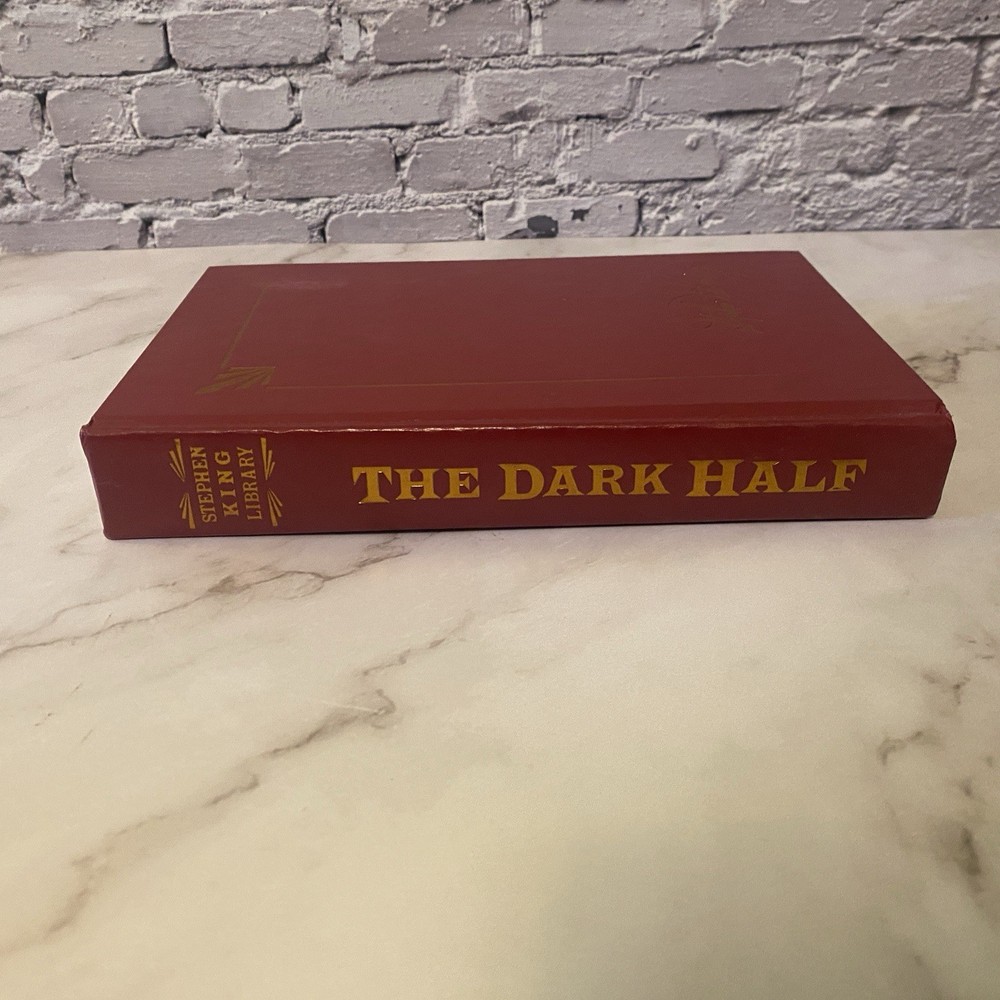 Disclaimer: please look at the pictures, as a few of the pages have a crease in the right corner of the page. Other than that, the book is in excellent condition. Thank you for looking! Immerse yourself in the chilling world of Stephen King with this collector's edition of "The Dark Half". This red leather-bound hardcover book, published in 1989 by Penguin, is a must-have for fans of horror and science fiction. The novel, written in English, tells a gripping story of a novelist who becomes entangled in a dangerous game with one of his characters. This edition, featuring a unique cover design and leather binding, is a valuable addition to any book collection. The book is in good condition, with no visible signs of wear and tear. Get your hands on this rare find and experience the thrill of Stephen King's storytelling at its best.