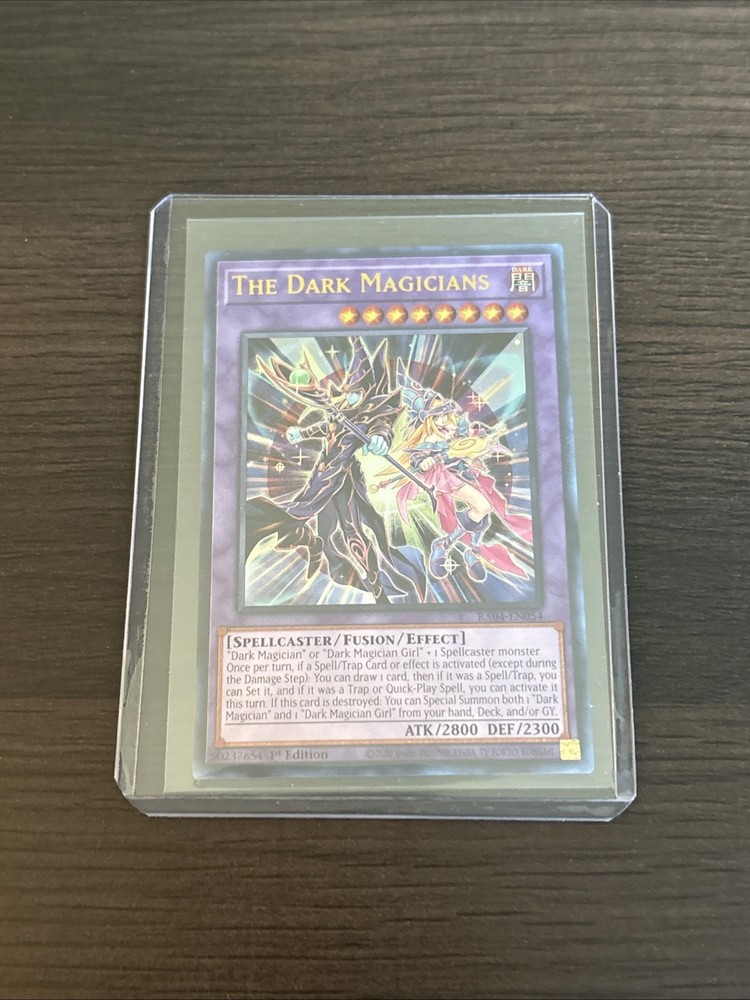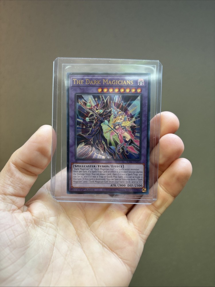The Dark Magicians RA04-EN054 is a highly sought-after Yu-Gi-Oh! TCG card manufactured by Konami. This 1st Edition card features a Spellcaster creature type with an impressive attack power of 2800. With a Japanese card size and English language, this foil card is in near mint condition and a valuable addition to any collector's deck.