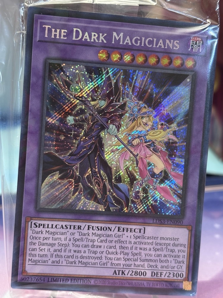Dive into the mystical realms of Yu-Gi-Oh! TCG with "The Dark Magicians" card, a Secret Rare fusion from the Legendary Duelists series. This limited edition collectible, card number 50237654, features a striking Holo finish that encapsulates the enigmatic essence of Darkness, making it a standout addition to any deck or display. Crafted with quality card stock and immaculately detailed in English, this card is a testament to Konami's dedication to the Yu-Gi-Oh! universe. The card, which is a 1st Edition from the year 2022, is designed to impress both serious collectors and seasoned duelists alike, offering a touch of exclusivity to your game. The card is seal and brand new!