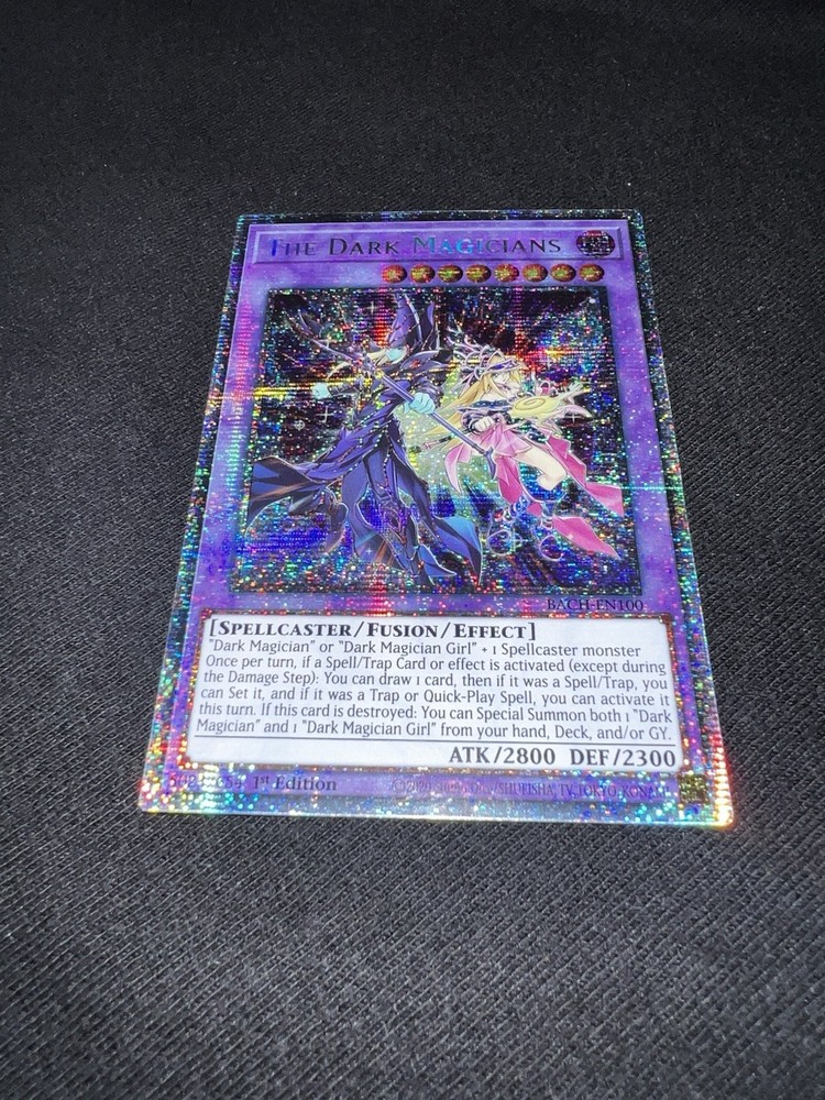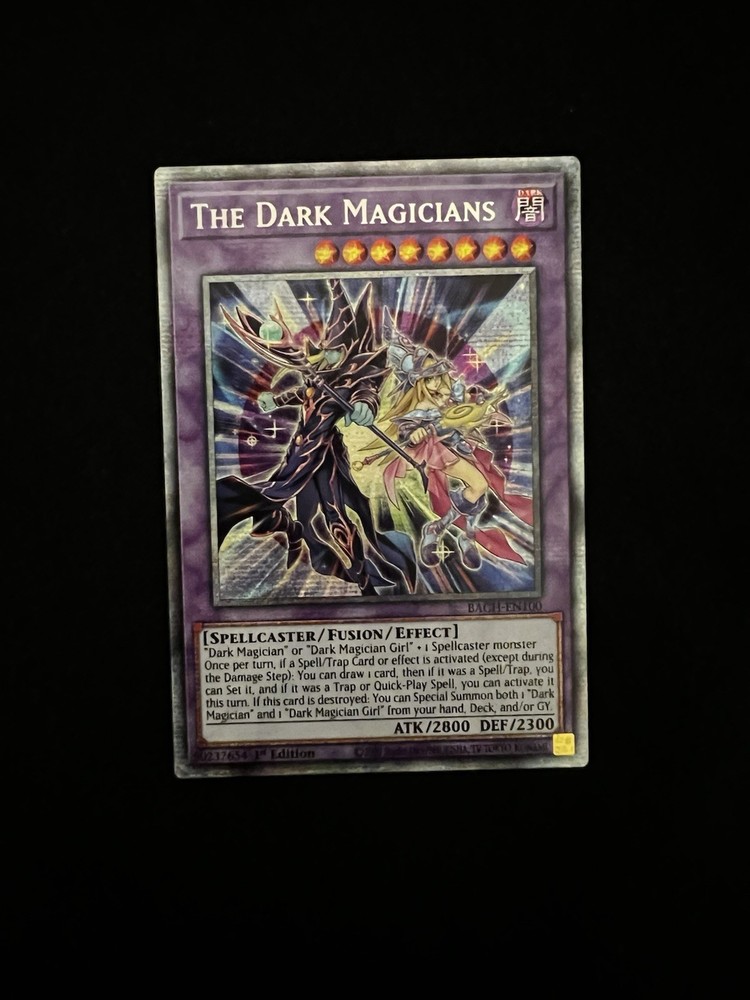 Yu-Gi-Oh! The Dark Magicians – Starlight Rare BACH-EN100 (1st Edition, NM) Battle of Chaos | English | 1st Edition Condition: • Near Mint (NM) – Card has been carefully stored and shows little to no signs of play. No creases, bends, or major edgewear. • Authentic Starlight Rare – High-rarity collector card from Battle of Chaos. Item Details: This listing is for The Dark Magicians – Starlight Rare (BACH-EN100) from the Battle of Chaos set. A stunning chase card, perfect for collectors or high-end Dark Magician deck builds. First edition and in near mint condition. Card will be shipped securely in a toploader with protective packaging. Feel free to message me with any questions
