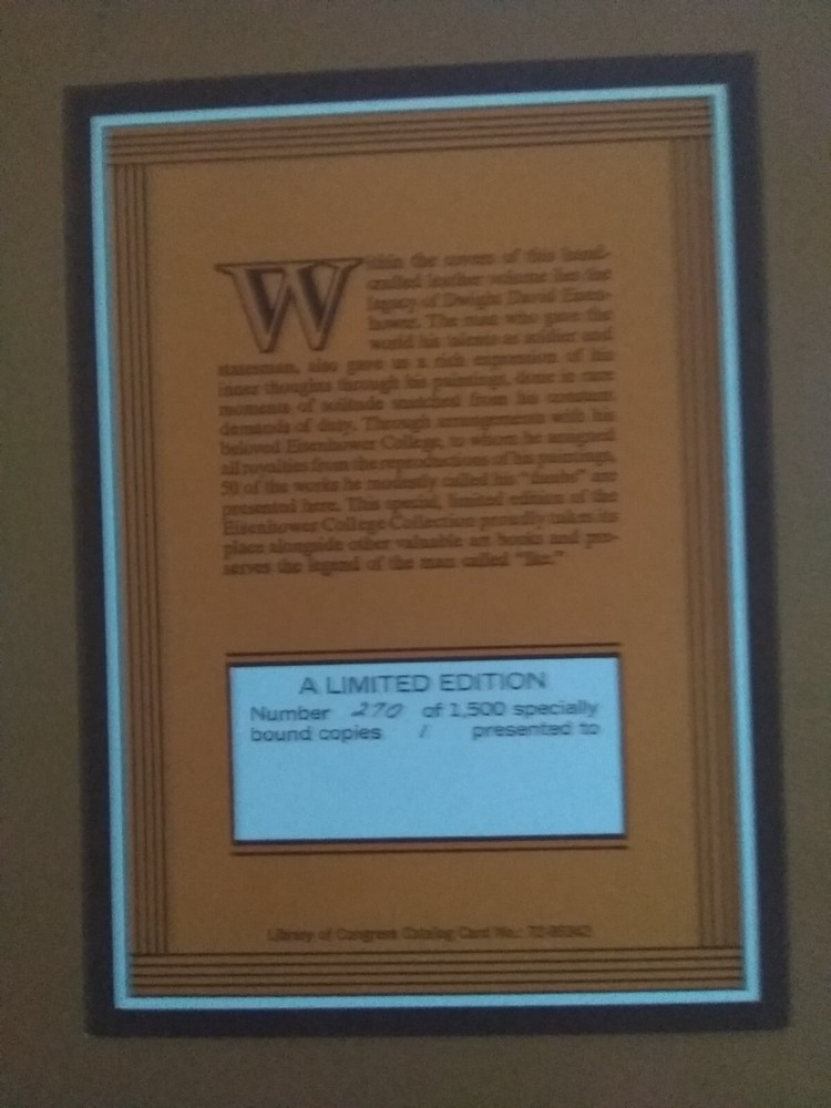 Dive into the life of one of America's most iconic figures with "The Eisenhower College Collection." This compelling nonfiction piece, authored by Dwight D. Eisenhower himself, offers an in-depth look at his presidency, art career, and cultural impact. The book, published in 1972 by Nash Publishing Corporation, is tailored for a diverse audience ranging from ages 9-12 to young adults and adults. This limited edition, leather-bound collectible is numbered and features 160 pages of rich content, enhanced by illustrations that bring history to life. Measuring 4.3 inches in height and width, with a comfortable weight of 31.9 ounces, this cloth book is a testament to Eisenhower's enduring legacy in art, culture, and politics.