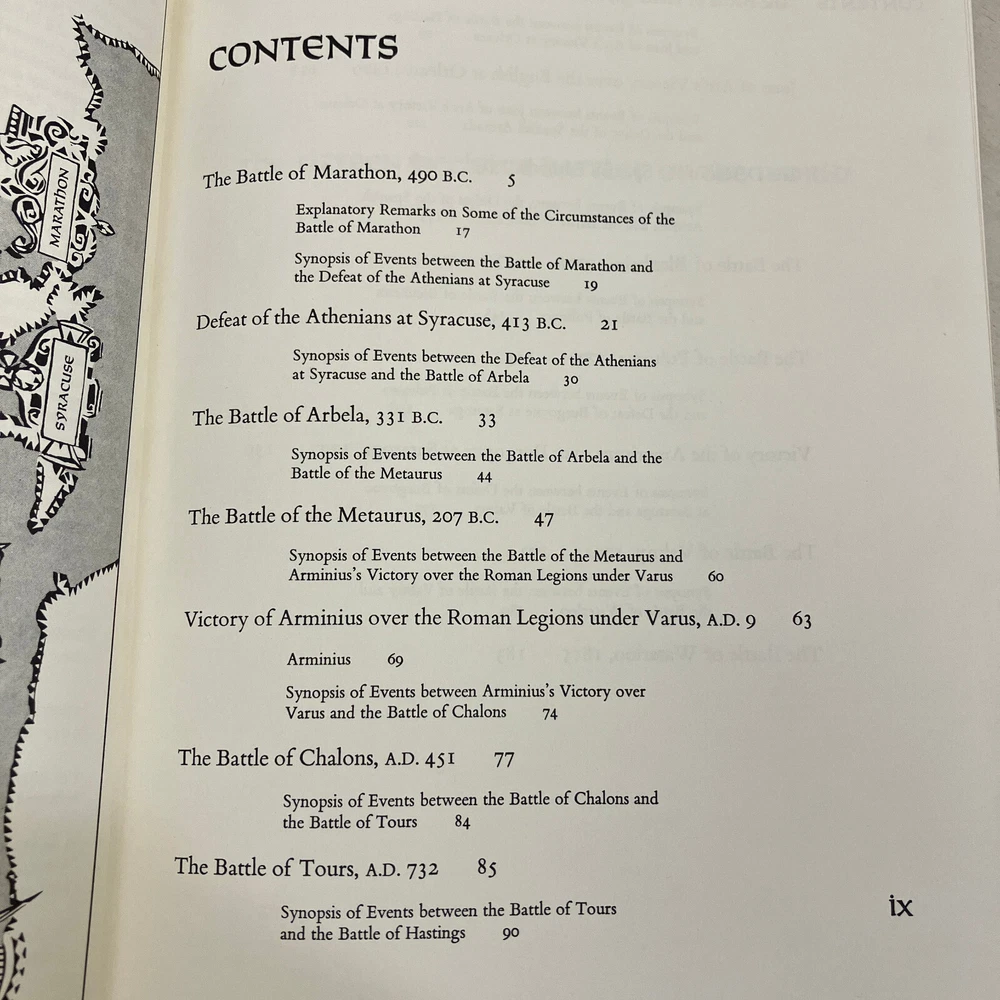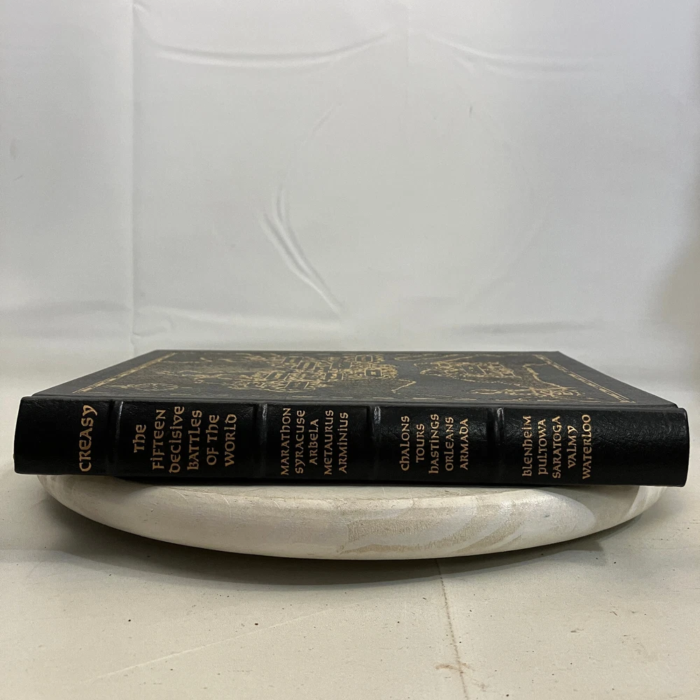 The Fifteen Decisive Battles of the World by Edward Creasy Easton Press 1969 HC This is a used book with general edge and shelf wear, heavy fading/damage to the covers and some spotting on gilded page edges. Binding is intact, no writing, stains, or unusual smells. See pictures for overview of condition. We are BrightLight Books. We have sold tens of thousands of items online since 1998. Money Back Guaranteed! For Local Pickup in our Fern Park, FL store, please message us! 10-45 (6051932) 11/11/2024 AH