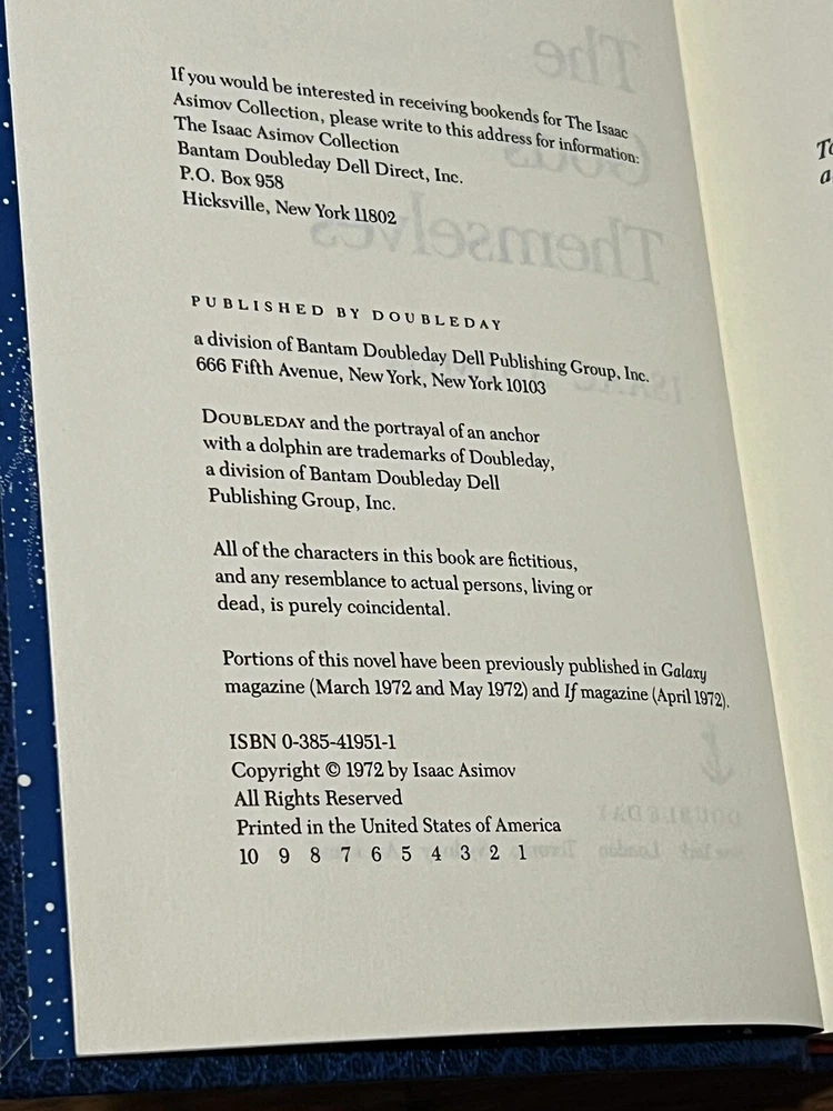 This is a used 1st edition 1st print in this faux leather Doubleday edition of “The Gods Themselves” Please review all pictures carefully before purchasing, as they depict the exact item for sale....
