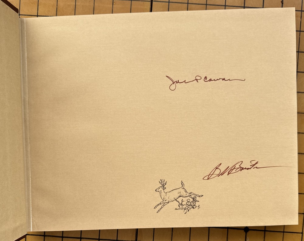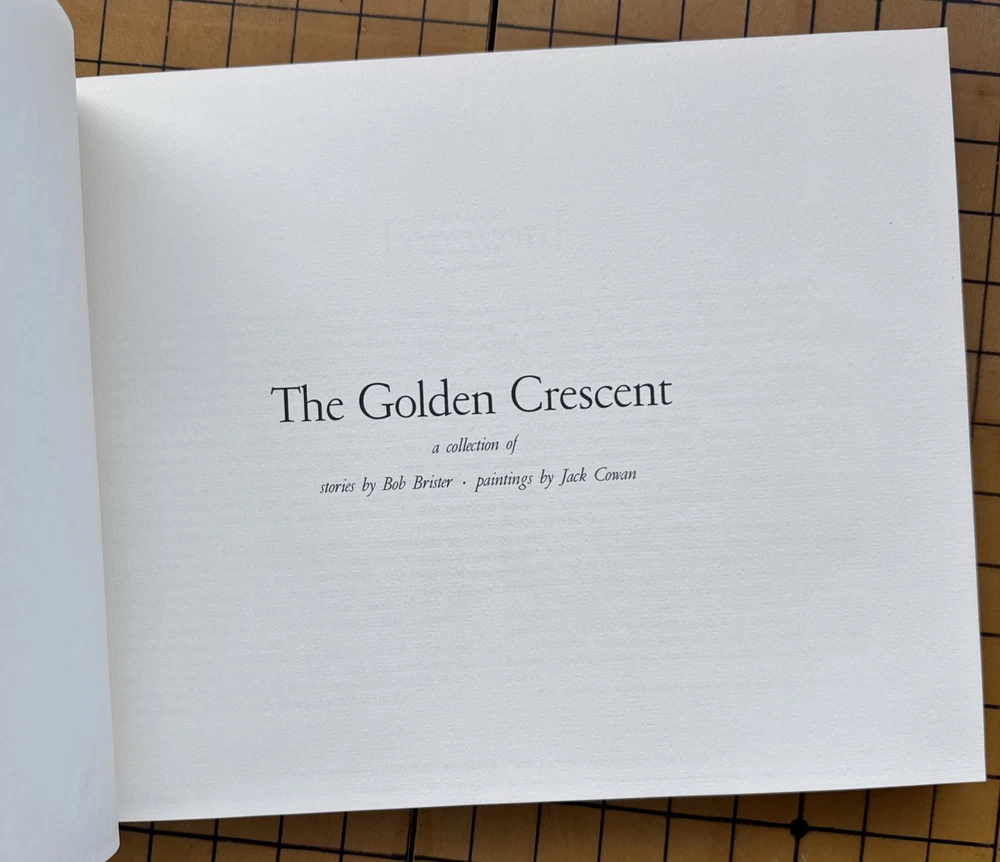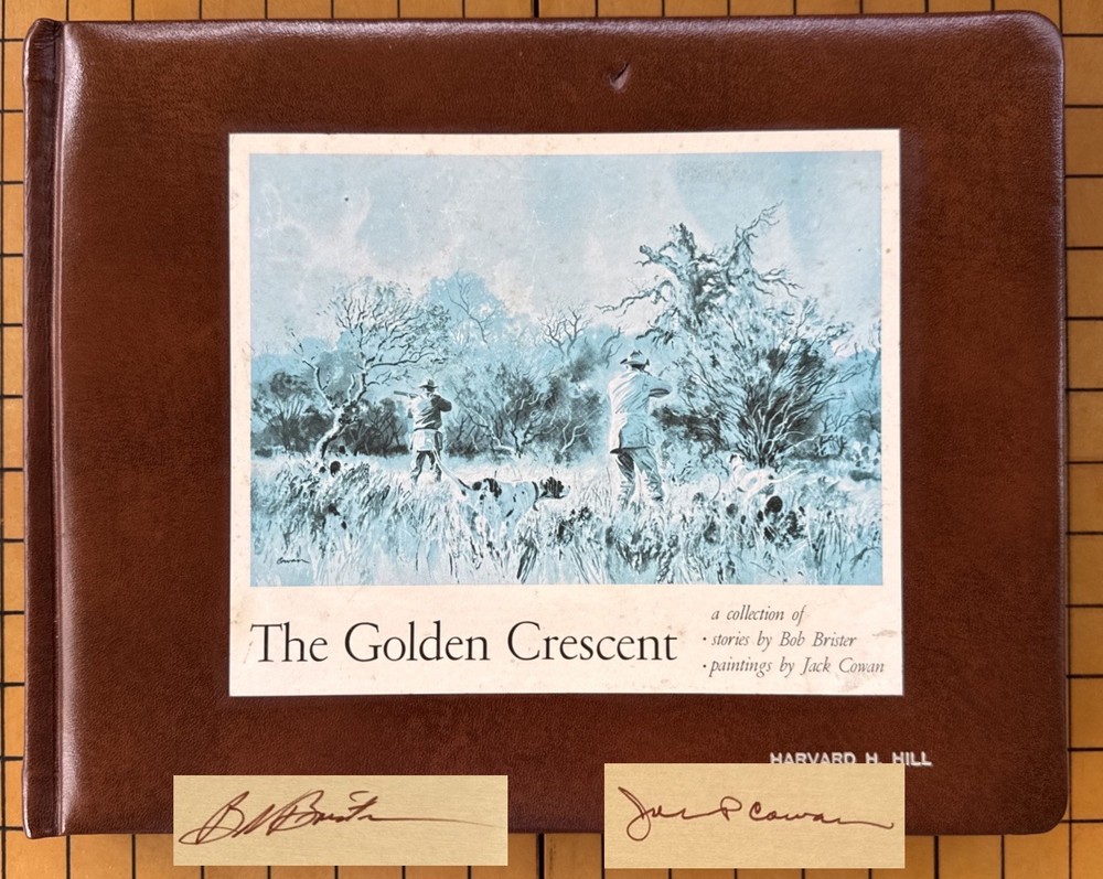 The Golden Crescent: A Collection of Stories by Bob Brister, illustrated by Jack Cowan (The Zephyr Press, Genuine Leather, Fifth Printing, 1990). SIGNED by Brister & Cowan on first front endpaper. Condition is Good; covers show use and wear, small indentation on front board, firm binding, no writing or highlighting, no folded or torn pages. "The Crescent Circle: A Collection of Stories" by Bob Brister and Jack Cowan is a beautifully crafted anthology that captures the essence of Texas through a series of enchanting tales. Brister's evocative prose paints vivid pictures of the Lone Star State's landscapes and culture, which Cowan's stunning illustrations capture and bring to life with a visual richness that complements the narrative perfectly. From tales of rugged cowboys to heartfelt stories of small-town life, this collection offers a diverse and engaging glimpse into the heart of Texas. We welcome all offers and inquiries, more photos and information available upon request. Shipped securely and promptly with USPS mail.