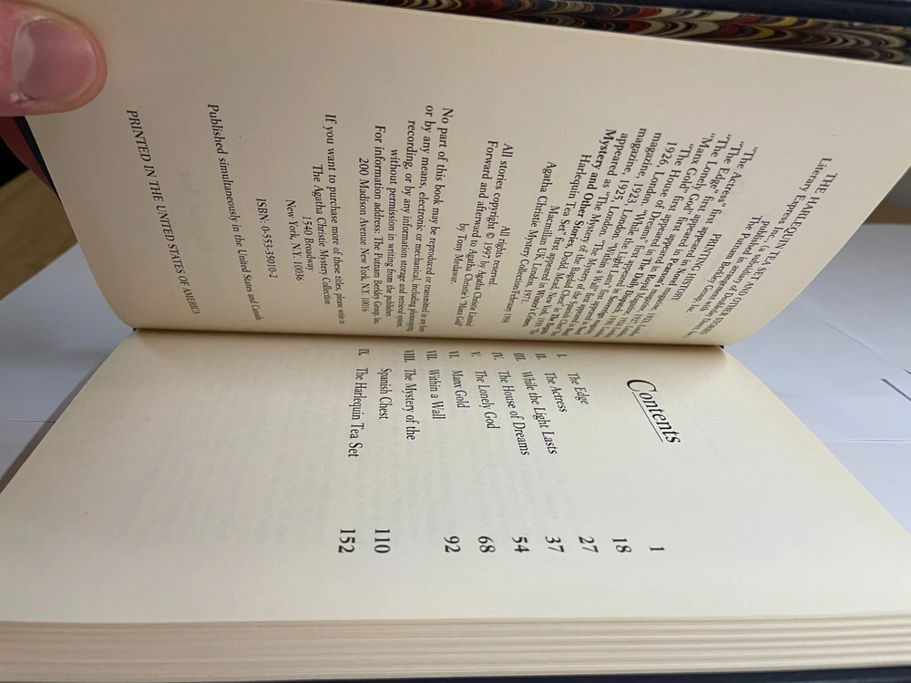 This book is from the Agatha Christie Mystery Collection, titled "The Harlequin Tea Set", published by Literary Express. The condition of this book is excellent. It appears to not have been read before as there is quite a bit of resistance when opening. As you can see from the images, there are no visible spots or bends on the cover. There are no tears or markings on the pages. "Dive into the captivating world of crime and mystery with Agatha Christie's "The Harlequin Tea Set." This vintage hardcover book, published by Bantam Books in 1997, features a beautiful faux leather bound cover. This book is a must-have for any fan of crime and thriller novels, with a genre that will keep you on the edge of your seat until the very end."