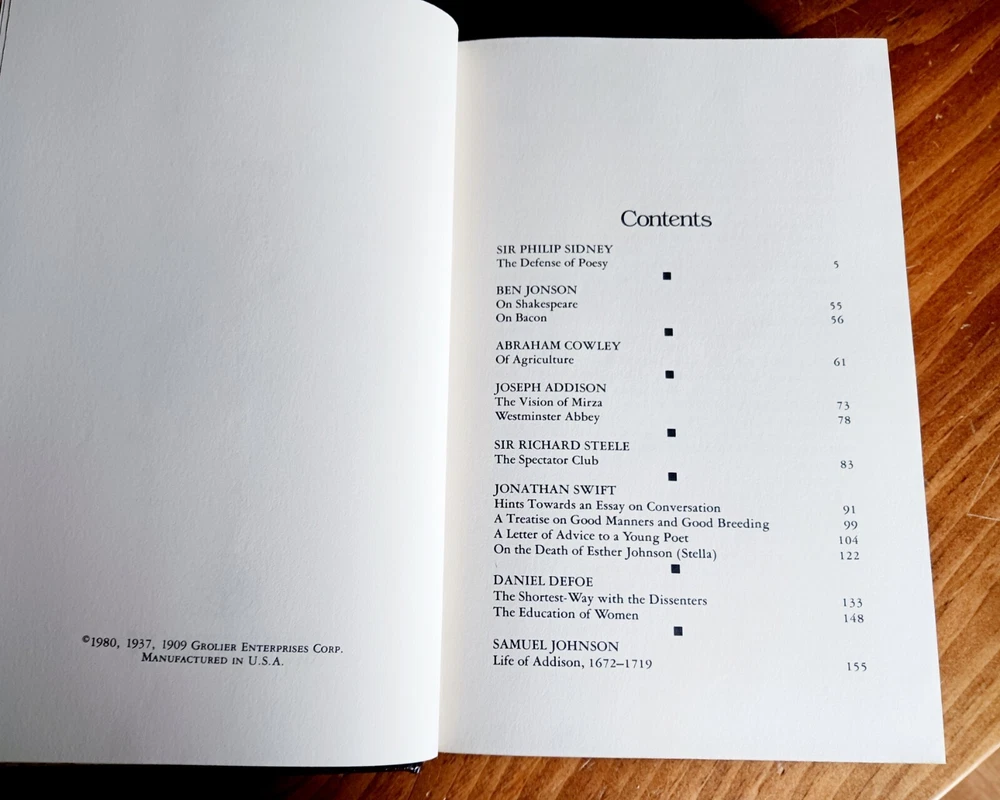 All Proceeds support the Moline Public Library programs, events and services. All purchased items are packaged and shipped from the library. Open days and hours follow Illinois/Federal guidelines. Library closed on holidays. We have multiple listings of Harvard Classics and will combine shipping at time of purchase. The Harvard Classics: Collector's Edition -Addison, Steele, Swift, Defoe, Johnson And Others- Compiled by: Charles William Eliot; Published: 1980 by Grolier Enterprises; New, Unread