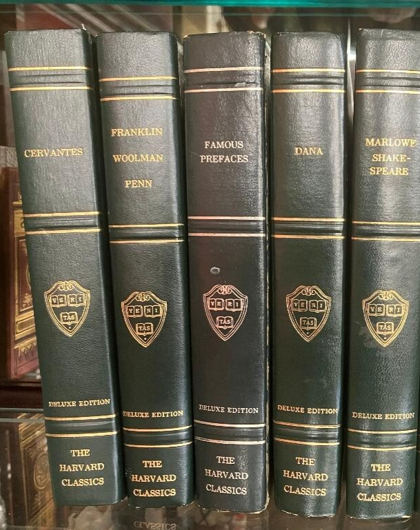 Dive into the richness of world literature with the Harvard Classics Deluxe Registered Edition, a collection that condenses thousands of years of great writing into a manageable, yet substantial library. This lot offers five volumes of classic literature, carefully curated and leather-bound to enhance both the aesthetic and tactile reading experience. Whether you're a bibliophile or simply starting your classic literature journey, these books promise to be a timeless addition to any library. Each book in this collection is a testament to the enduring legacy of literary artistry, edited by Harvard scholars to provide readers with easy access to the masterpieces that have shaped human thought and culture. These hardcover editions are as much a collector's item as they are a source of enlightenment, perfect for adult readers with an appreciation for antiquarian and collectible works.