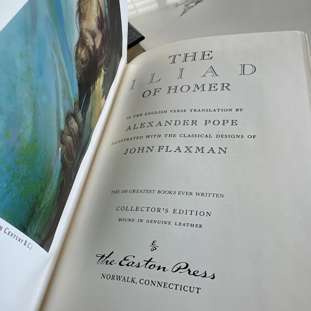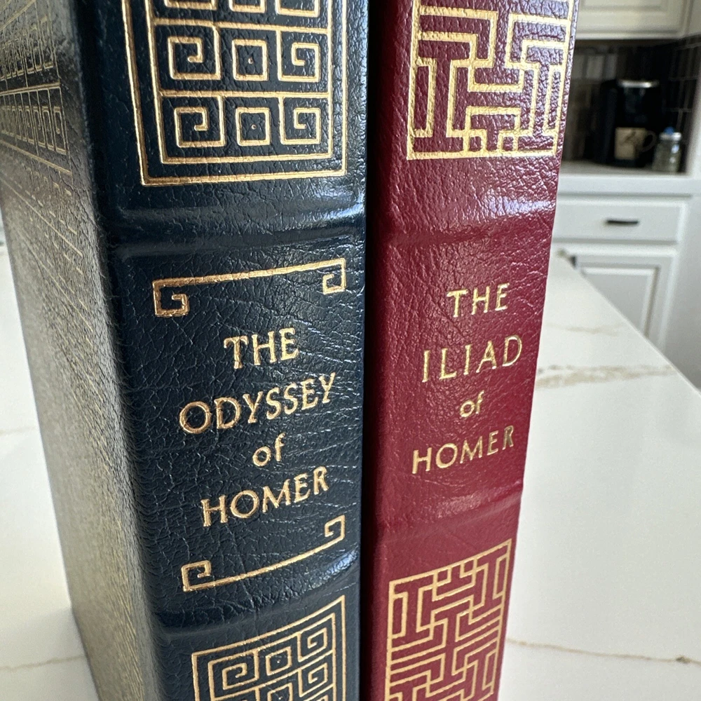 Delve into the epic world of ancient Greece with the Easton Press Leather Bound edition of "The Iliad and The Odyssey" by Homer. This collectible set is a testament to literary excellence, where the richness of the stories is matched by the prestige of a leather-bound binding. Ideal for collectors and literature enthusiasts alike, the set is a symbol of timeless tales and classic scholarship. Each volume is crafted with care, presenting the legendary works in a language that remains as vibrant today as it was in Homer's time. The collector's edition adds an extra layer of allure, making it a distinguished addition to any library. Whether for display or enjoyment, this set promises to be a treasured keepsake for anyone captivated by the grandeur of literature and fiction.