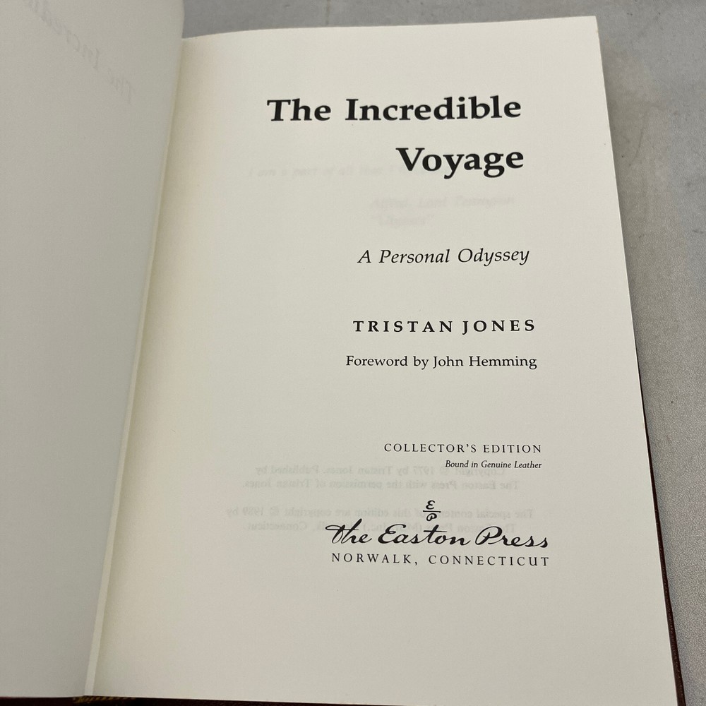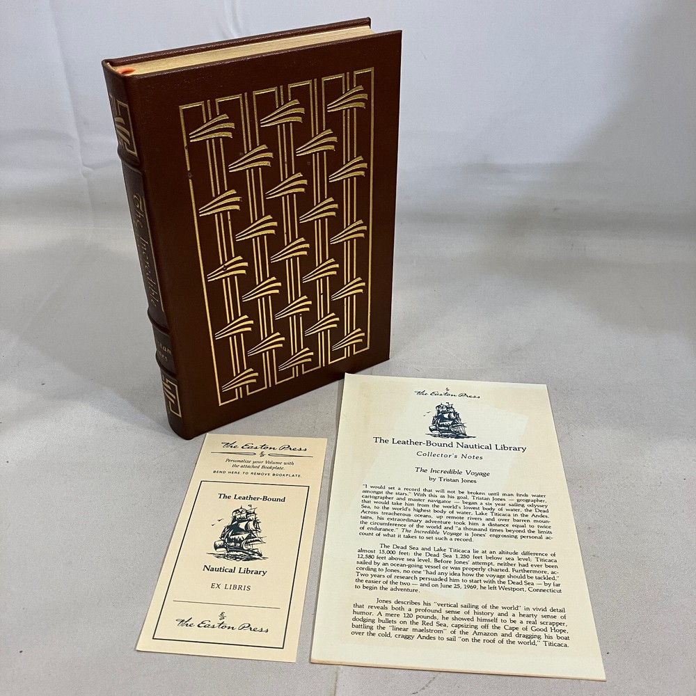 The Incredible Voyage by Tristan Jones Easton Press Nautical Library 1989 HC This is a used book with general edge and shelf wear, some fading to the covers and spotting on gilded page edges. Binding is intact, no writing, stains, or unusual smells. See pictures for overview of condition. We are BrightLight Books. We have sold tens of thousands of items online since 1998. Money Back Guaranteed! For Local Pickup in our Fern Park, FL store, please message us! 10-47 (5010672) 11/13/2024 AH
