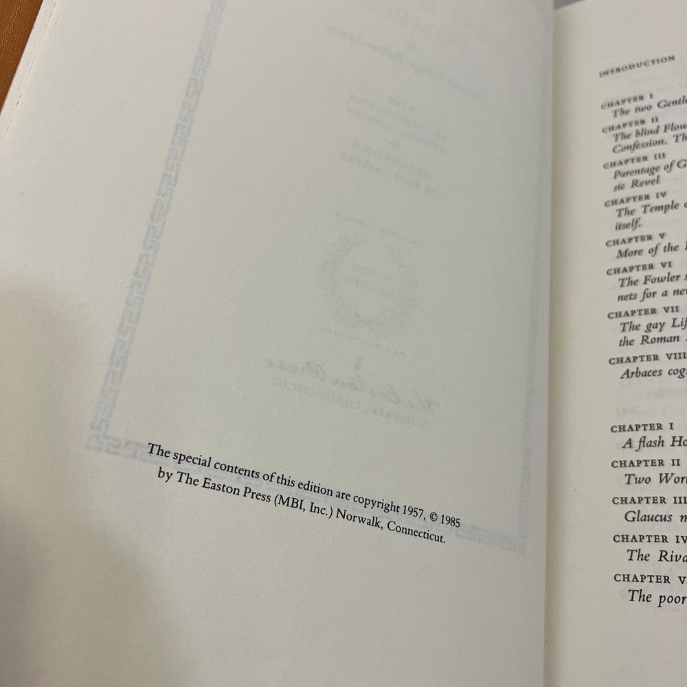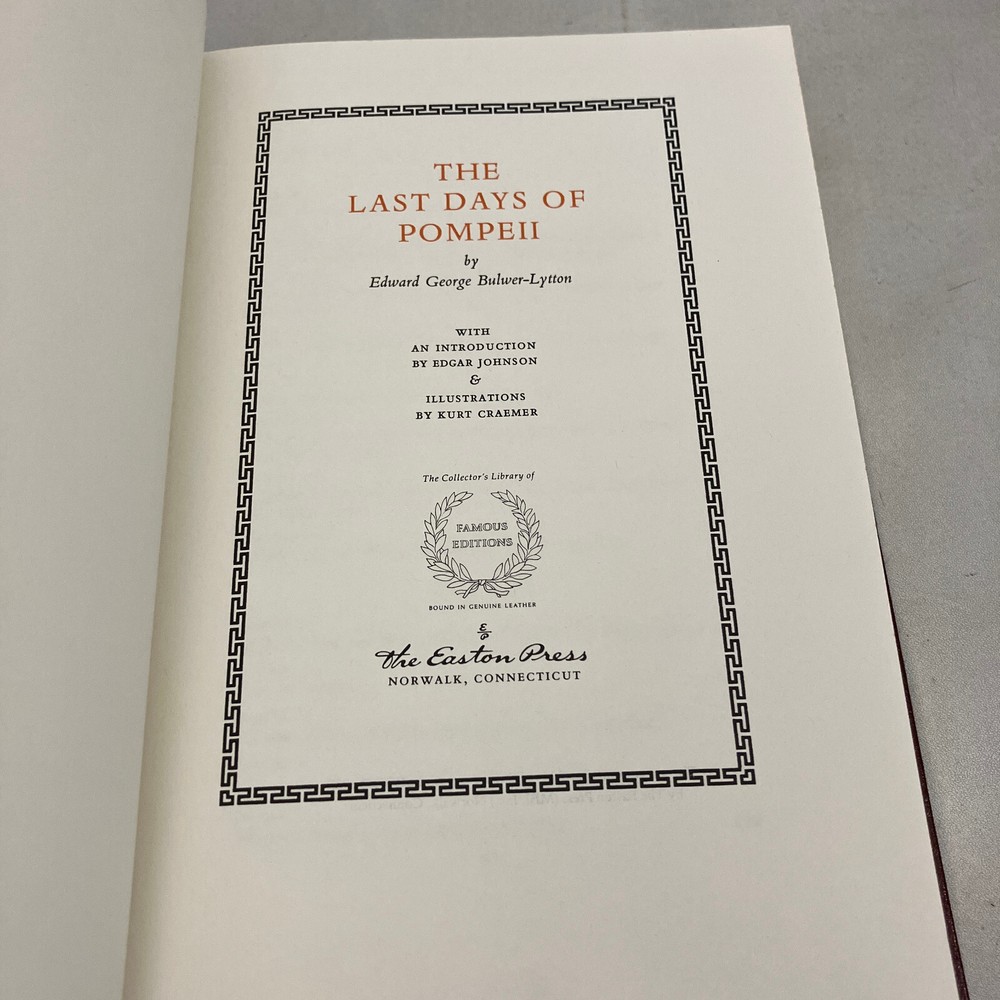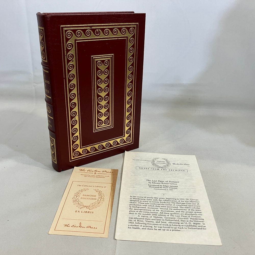 The Last Days of Pompeii by Edward Lytton Easton Press Famous Editions 1985 HC This is a used book with general edge and shelf wear, some fading to the covers and spotting on gilded page edges. Binding is intact, no writing, stains, or unusual smells. See pictures for overview of condition. We are BrightLight Books. We have sold tens of thousands of items online since 1998. Money Back Guaranteed! For Local Pickup in our Fern Park, FL store, please message us! 10-47 (5010695) 11/13/2024 AH