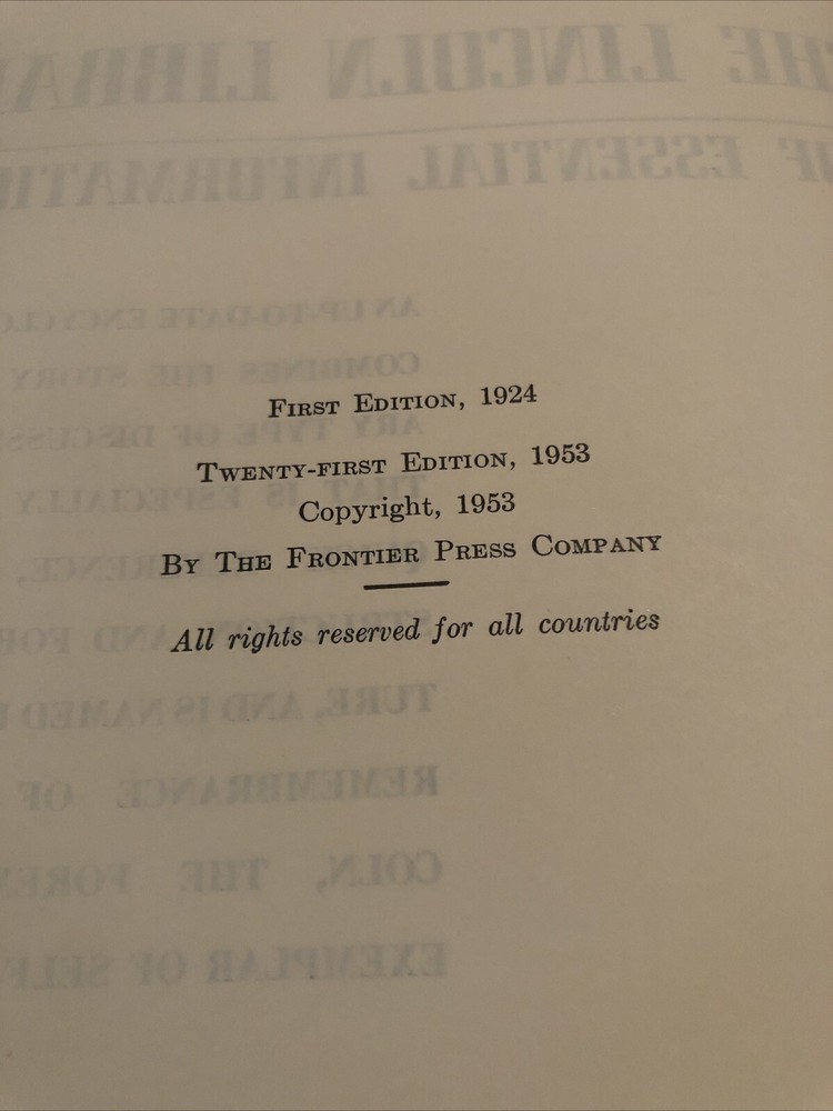 This vintage set of two volumes from The Lincoln Library of Essential Information is a must-have for any history enthusiast. Printed in 1961 by The Frontier Press Co. in the United States, these original leather-bound books are a rare find. The set includes a variety of topics and is perfect for anyone interested in expanding their knowledge on a specific subject. The books are in great shape and would make a wonderful addition to any collection.