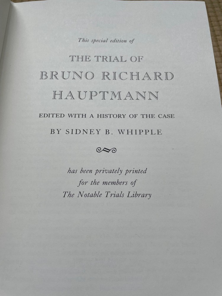 For sale is a copy of The Lindbergh Kidnapping Case by Sidney B. Whipple as published by Gryphon Editions as part of their Notable Trials Library series. The book appears to have never been read and would be in like-new condition except for a previous owner's bookplate attached to the inside of the front cover (see photo).
