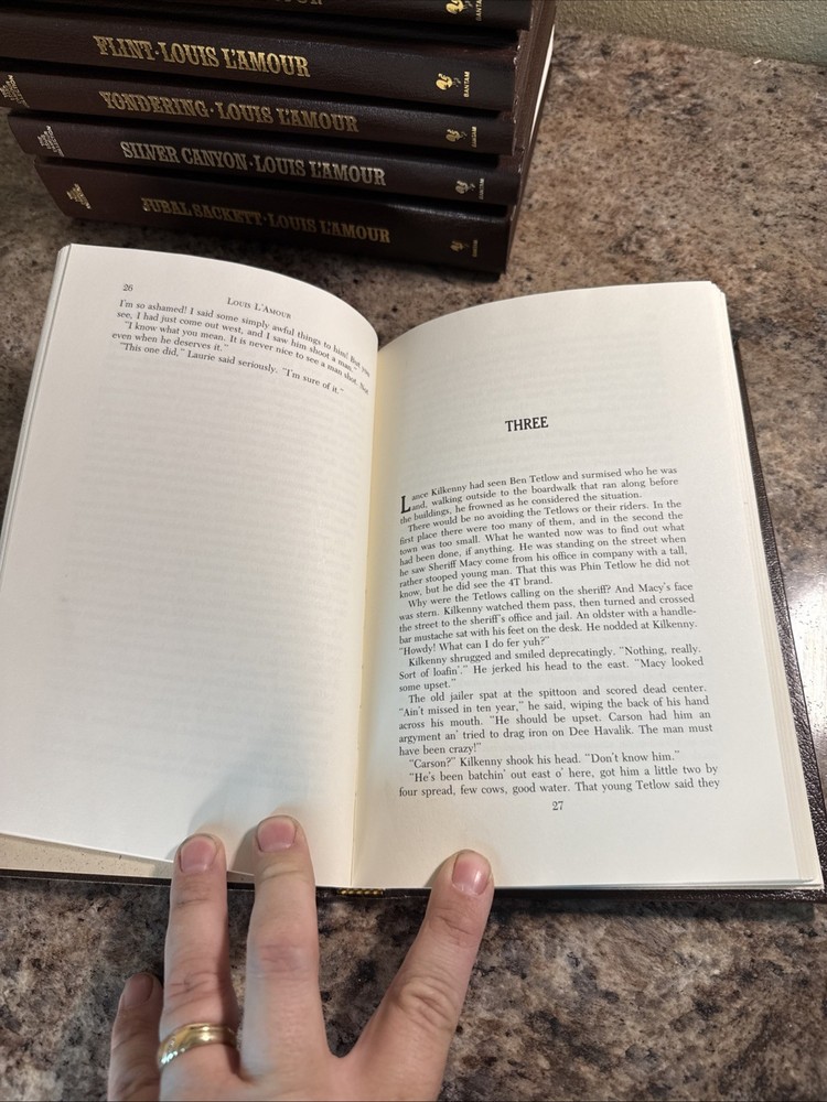 The Louis L'Amour Collection Hardcover Books Lot of 9 Bantam Leatherette. Nice shape, most look to never have been read. Some normal wear from sitting in a box but overall very nice shape (see picture...