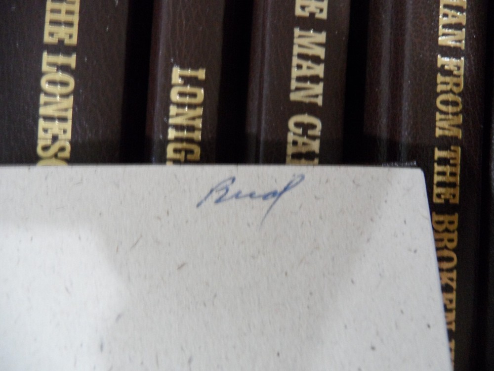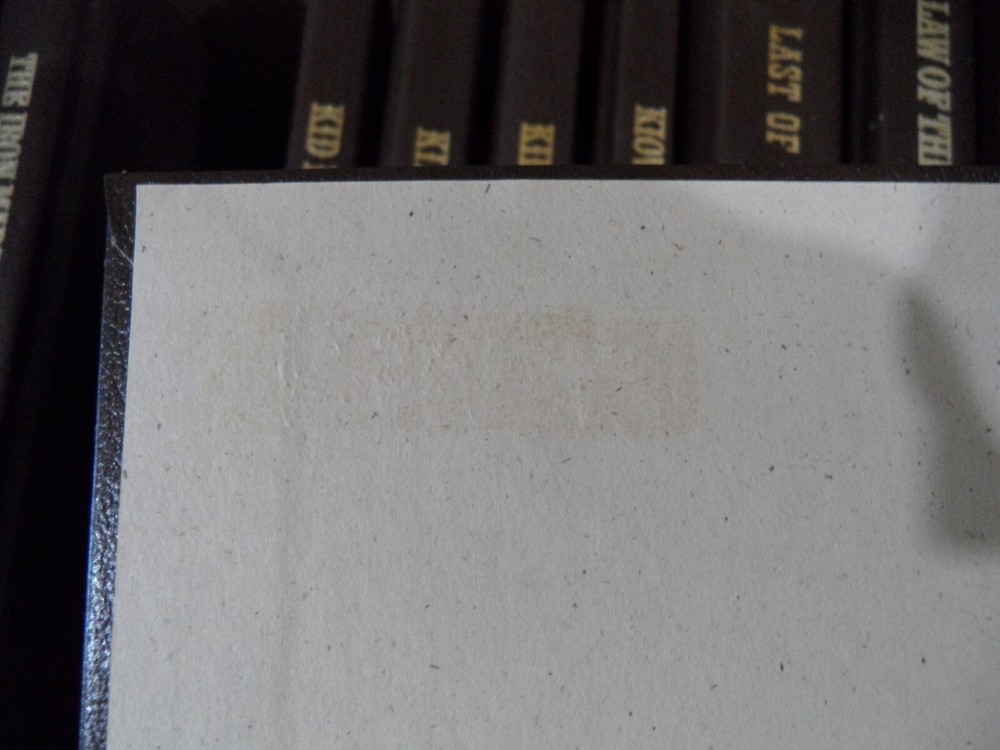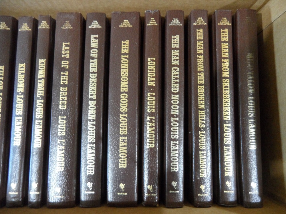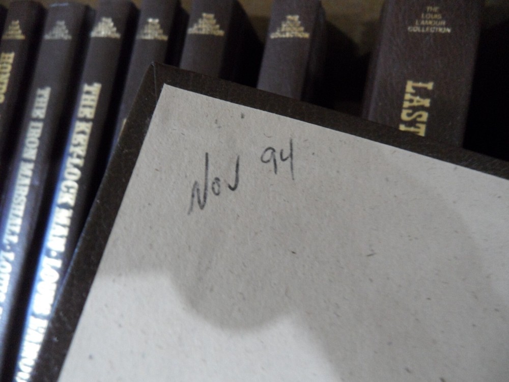Overall covers and bindings intact. No writing, nameplates except where noted. please see photos The Hills of Homicide The Haunted Mesa Hanging Woman Creek name on cover page Hondo Iron Marshall Keylock Man residue inside cover page from sticker Kid Rodelo Killoe Kilrone Kiowa Trail date on inside cover page Last of the Breed Law of the Desert Born Lonesome Gods scrape on front cover Lonigan Man Called Nood Man From the Broken Hills Man From Skibberdeen Milo Talon Title faded