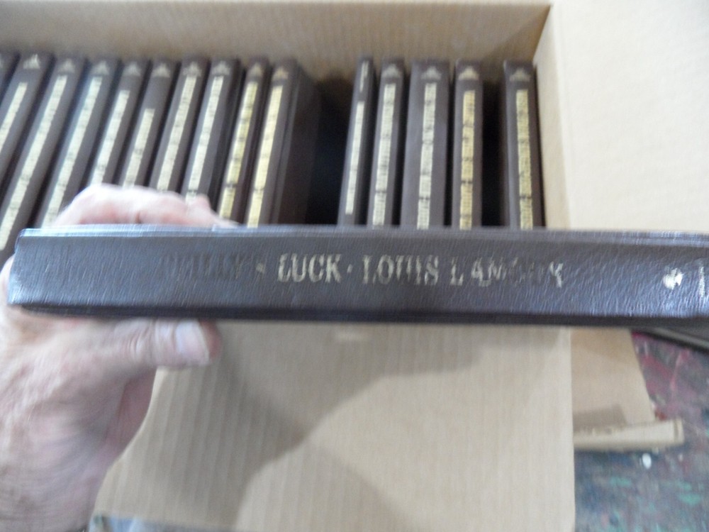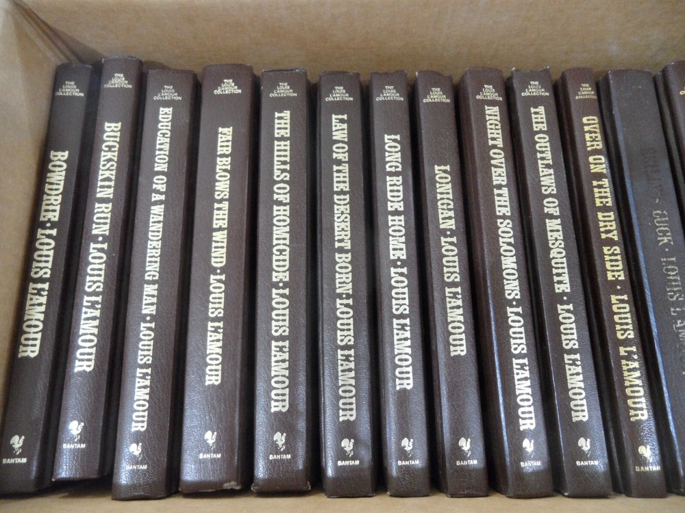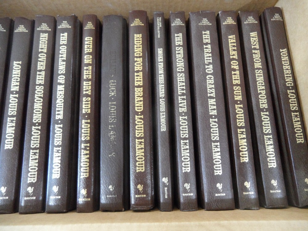 Books are in good condition. Overall covers and bindings tight. No writing or nameplates except where noted Conditions of specific books follow Bowdrie Buckskin Run Education of a Wandering Man Fair Blows the Wind some discoloration of page ends Hills of Homicide Law of the Desert Born Long Ride Home Lonigan Night Over the Solomons Outlaws of Mesquite Over on the dry Side Reilly's Luck title on cover worn page ends dirty Riding for the Brand Smoke From This Altar Strong Shall Survive Trail to Crazy Man Valley of the Sun West From Singapore Yondering
