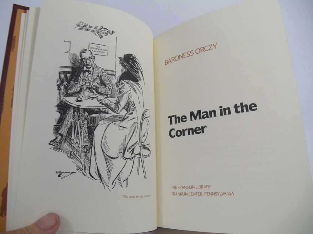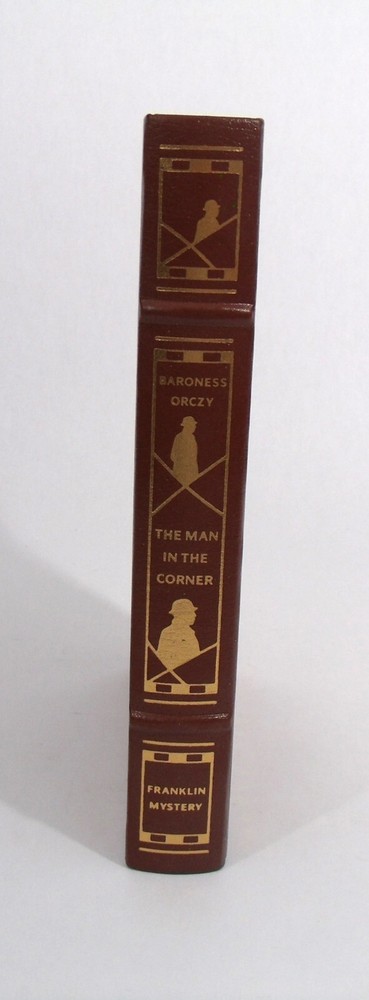The Man In The Corner by Baroness Orczy - The Franklin Library 1990 Hardcover Franklin Library 1990 Leather Bound, Accented in 22kt Gold Printed on Archival Paper with Gilded Edges Endsheets are a Moire Fabric Smyth Sewing and Concealed Muslin Joints Full Leather with Hubbed Spine Beautiful book of "THE MAN IN THE CORNER" by Baroness Orczy, One of the The Franklin Library of Mystery Masterpieces collection. 1988. Beautifully silver gilt page edges, silver embossed cover. Excellent condition. 3815 10c1