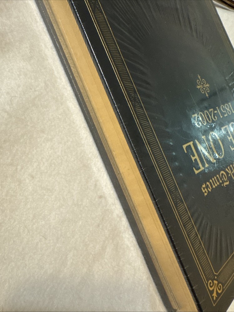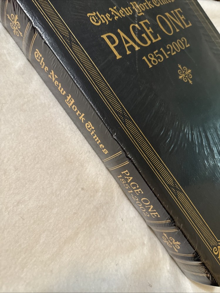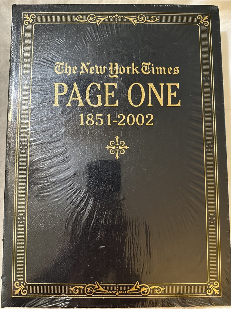 The "New York Times: Page One 1851-2002" is a beautifully bound collector's edition published by Easton Press. This leather-bound hardcover book features a nonfiction narrative by The New York Times, making it a valuable addition to any adult's collection. With its historical significance and prestigious design, this antique and collectible piece captures the essence of the iconic newspaper over a century and a half.