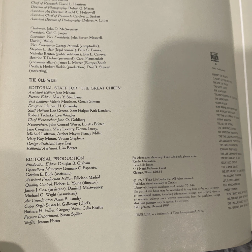 This vintage hardcover book, "The Great Chiefs" from The Old West series by Time Life Books, is a must-have for any collector of Western, war and combat, American history, and biography genres. The book is Faux Leather Bound and Illustrated, making it a beautiful addition to any bookshelf. The book is written in English and published in 1975, with the intended audience being young adults and adults. The book is a First Edition, Collector's Edition, and is a great addition to any book collection. The book is non-fiction and a great resource for those interested in the history of the Old West and the Great Chiefs.