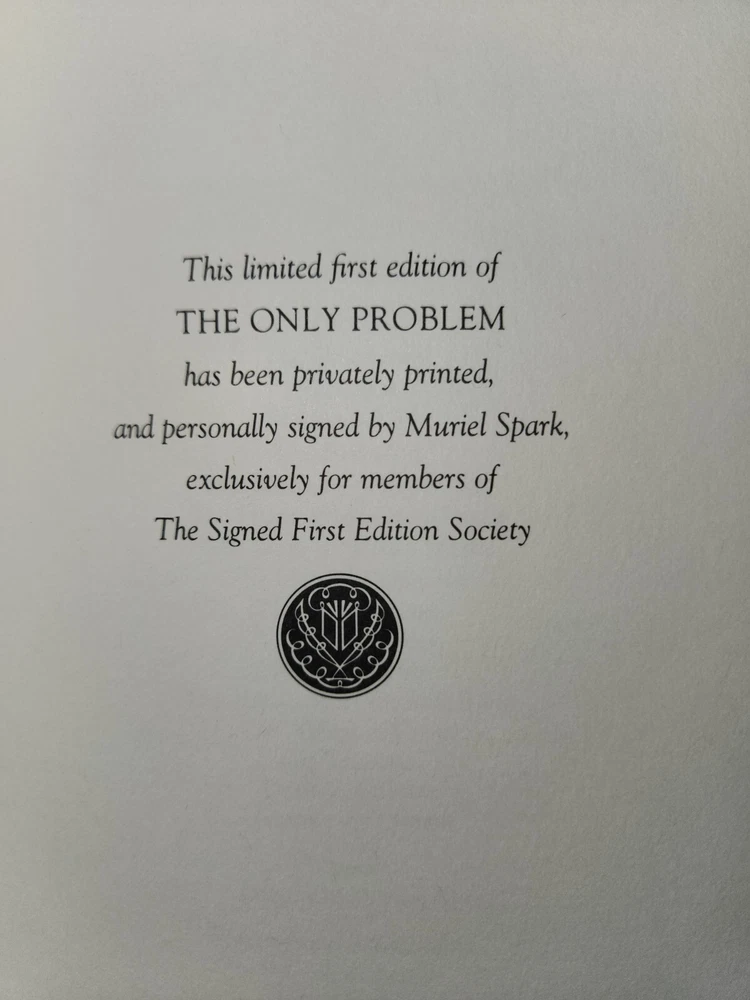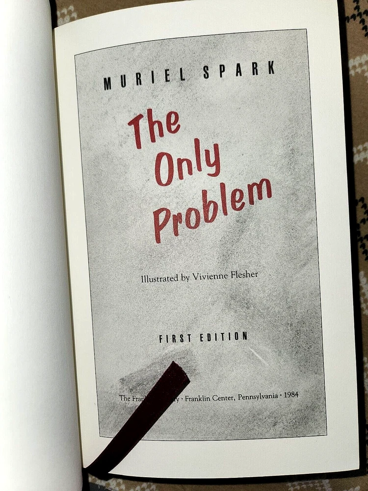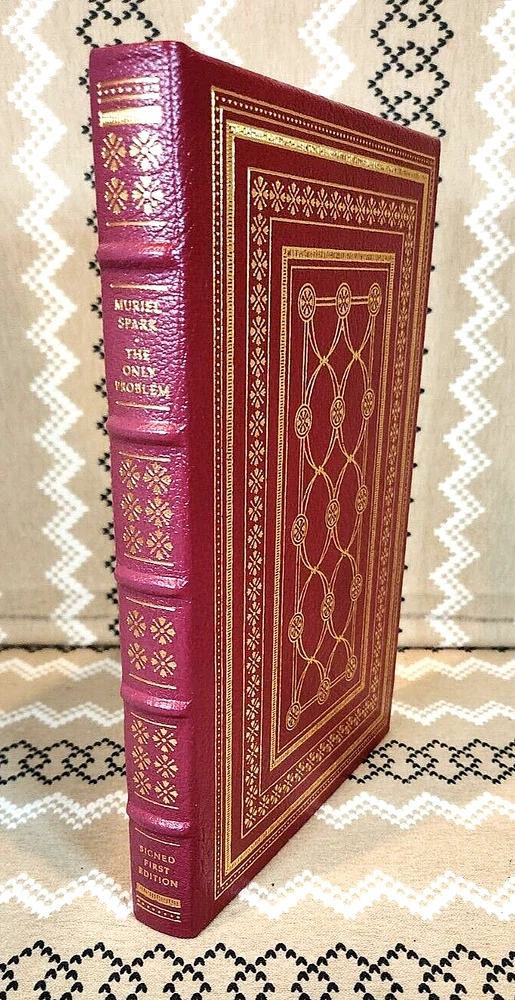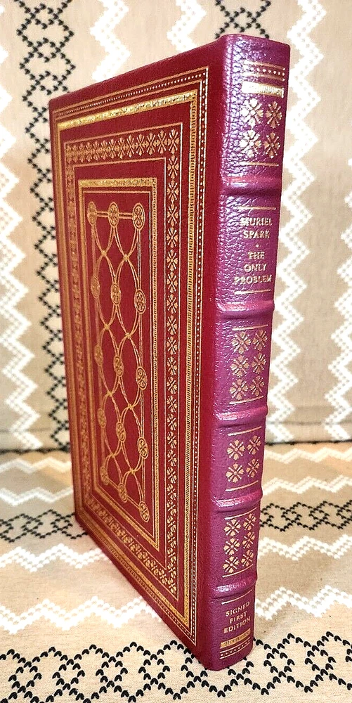 CONDITION NEW The Only Problem: by, Muriel Spark. Franklin Library. Coward-McCann, Publisher SIGNED. Limited 1st Edition Vivienne Flesher, Illustrator Full Leather 1984 177 Pages A wealthy academic’s life shatters when his estranged wife becomes the suspected leader of a terrorist organization Having led a successful, comfortable life, Harvey Gotham retires to the French countryside to pursue bookish obsessions—namely, a long monograph on the Book of Job, the biblical narrative of faith in the face of extraordinary suffering. But Gotham’s intellectual interests soon bleed into his daily life when a series of misfortunes, from a destructive affair to his wife’s involvement with an extremist group, threaten to destroy everything he holds dear. Hailed by the New York Times as “an extremely sophisticated account of the perils that surround our unsuspecting lives in the world today,”The Only Problem balances Spark’s unique blend of razor-sharp satire and moral introspection in one fast-paced, absorbing novel. This ebook features an illustrated biography of Muriel Spark including rare photos and never-before-seen documents from the author’s archive at the National Library of Scotland. Gilt page edges Raised Bands Accented in 22kt gold The Signed First Edition Society Full Leather-bound Satin Bookmark Ribbon still in original position Silk Moiré Endsheets Smyth sewing and concealed muslin joints Terminology that may be used in this description: Bookplate: Highly sought after by some collectors, a book plate is an inscribed or decorative device that identifies the owner, or former owner, of a book. Most often bookplates are affixed to the endpaper of a book. Bump: Indicates that the affected part of the book has been impacted in such a way so as to cause a flattening, indention, or light bending. Deckle Edge: Deckle edge is the feathered edge of a page. Traditionally and historically, this was a side effect of the process of making paper. Dust Jacket: Sometimes used as another term for dust jacket, a protective and often decorative wrapper, usually made of paper which wraps around the binding of a book Ex-library: A former library book, generally containing library acquisition and ownership stamped Markings, and other typical indications of the library's use. Foxing: Or, Foxed is the age related browning, or brown-yellowish spots, that can occur to book paper over time. When this aging process happens to the paper in a book it is referred to as "foxed". Remainder Mark: A remainder marked book is just that - a mark to the page edges of a book. This mark is placed on the page edges by a publisher as books are returned from bookstores or sold to discounters. Rubbing: Abrasion or wear to the surface. Usually used in reference to a book's boards or dust-jacket. Shelf Wear: (shelving wear) describes damage caused over time to a book by placing and removing a book from a shelf. Soiled: Generally, refers to minor discoloration or staining.