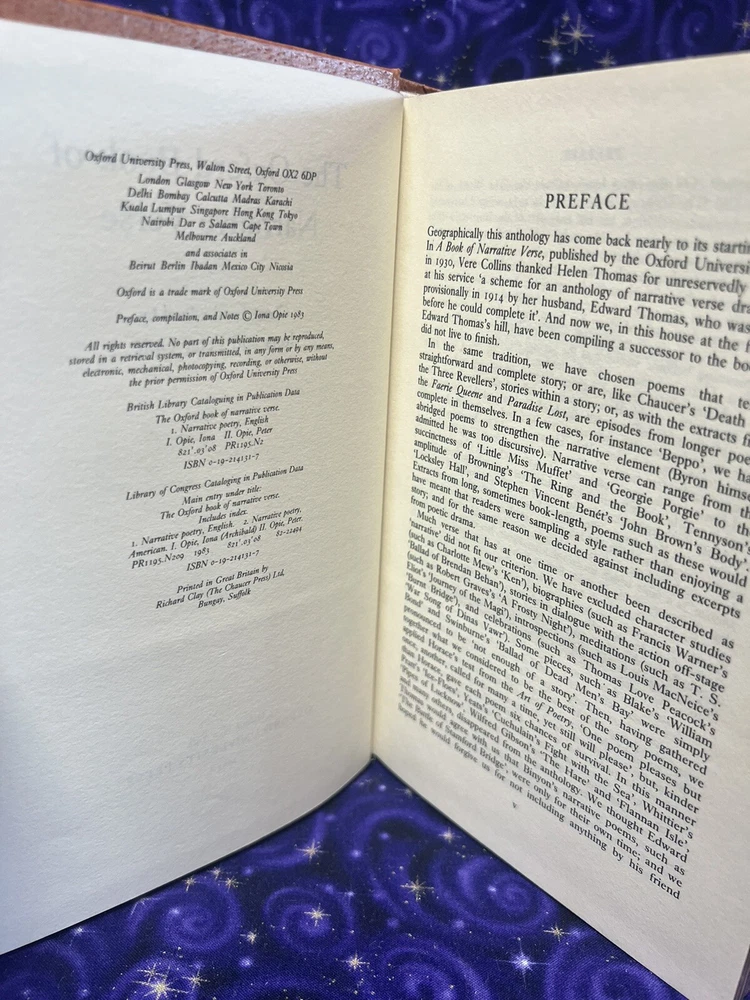 The Oxford Book of Narrative Verse by Iona and Peter Opie Leatherbound with Slipcase Copyright 1983 Published by Oxford University Press First Edition Please Refer to Full item description and photographs and feel welcome to contact us with any questions regarding this item. Books are shipped within two days of payment.