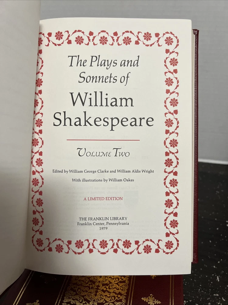 The Plays and Sonnets of William SHAKESPEARE: Vol 1-2 Franklin Library Set. Overall in very good condition. Contains some ware but again a great set of books....