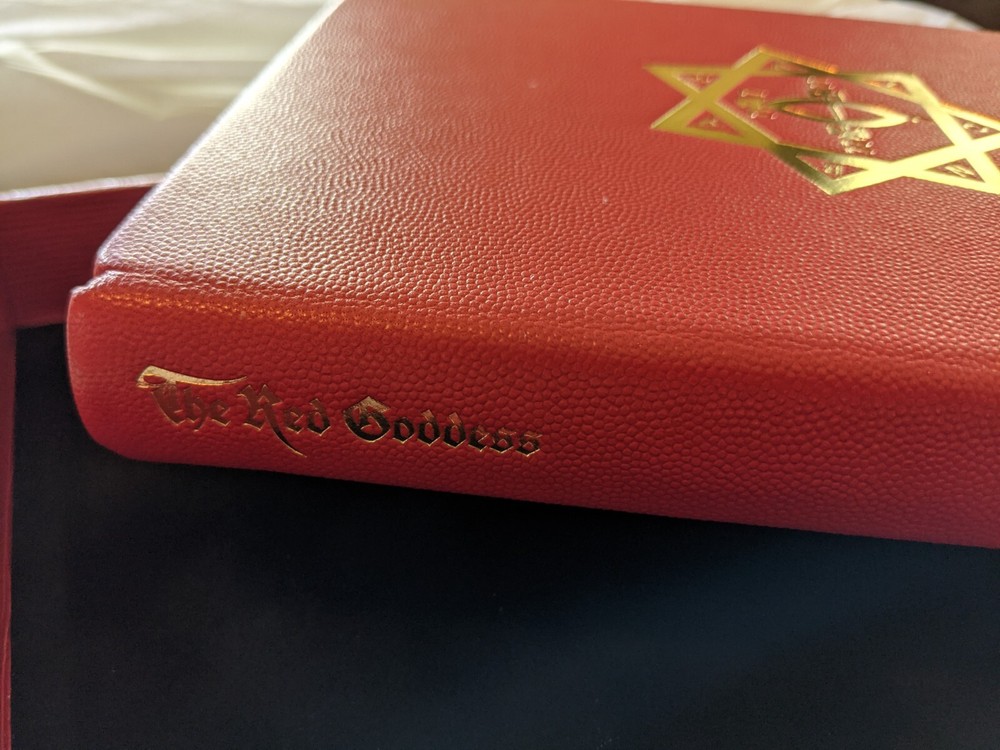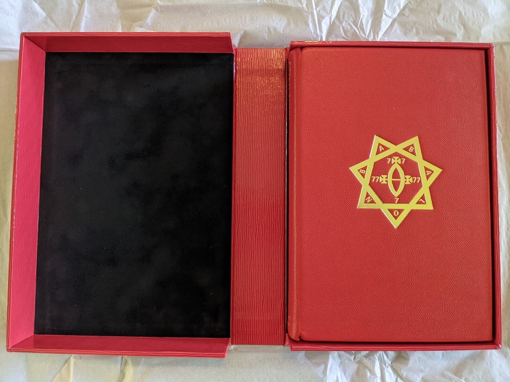 This stunning deluxe edition of *The Red Goddess* is a true collector's treasure! The rich scarlet goatskin binding, gleaming gold star of Babalon, and luxurious marbled endpapers make it a work of art. Limited to just 77 signed copies, it feels sacred and exclusive. The clamshell box adds an extra layer of elegance, while the unread condition ensures pristine quality. A must-have for devotees of Crowley, Thelema, or esoteric beauty—this book is as much a ritual object as it is a profound exploration of Babalon. Absolutely breathtaking!