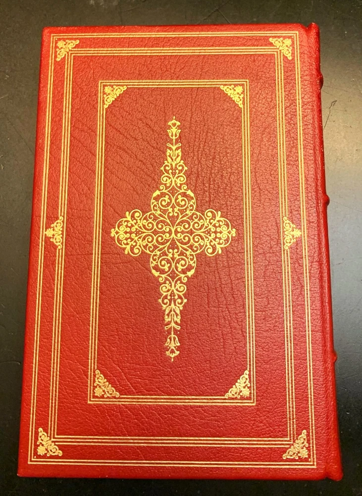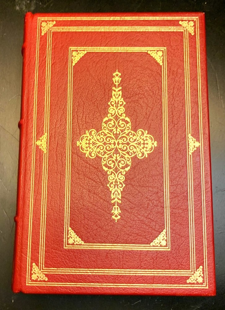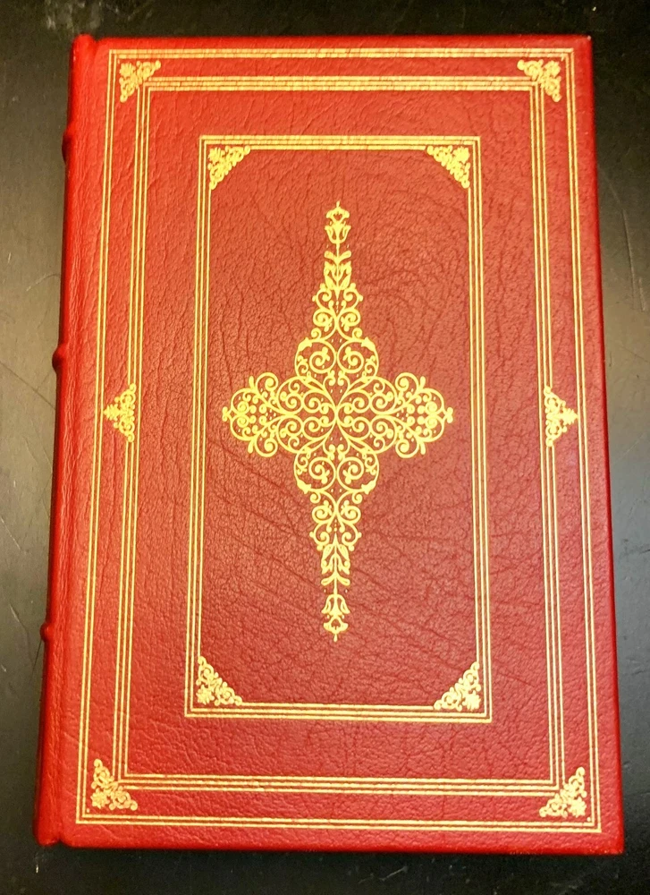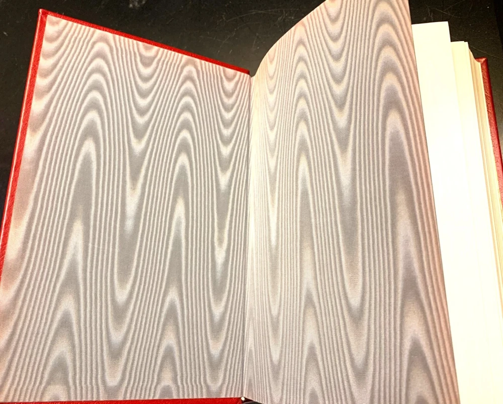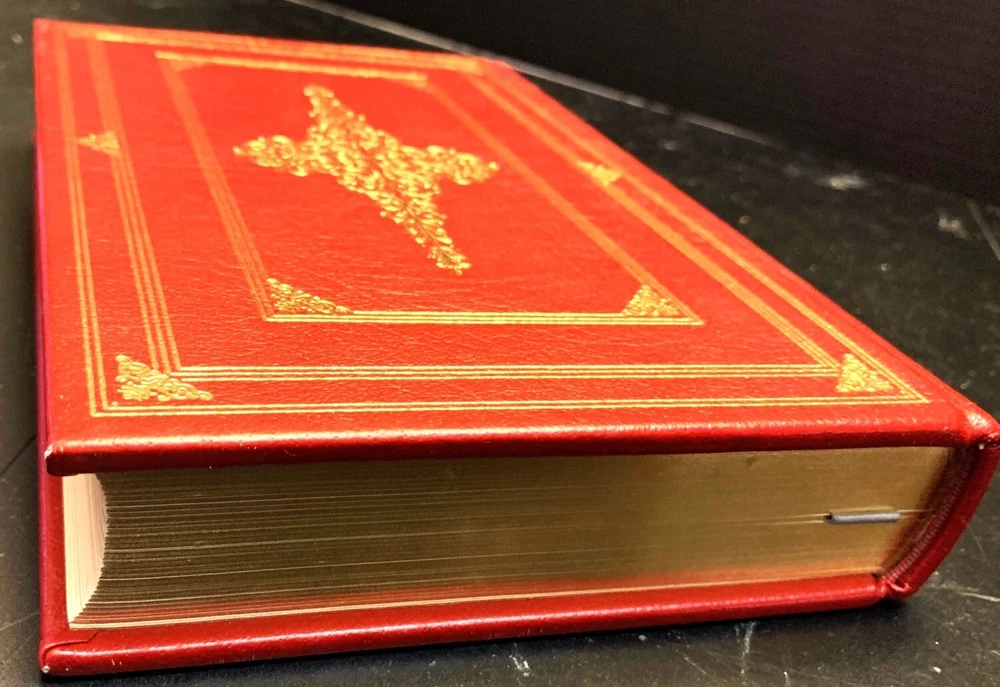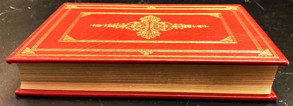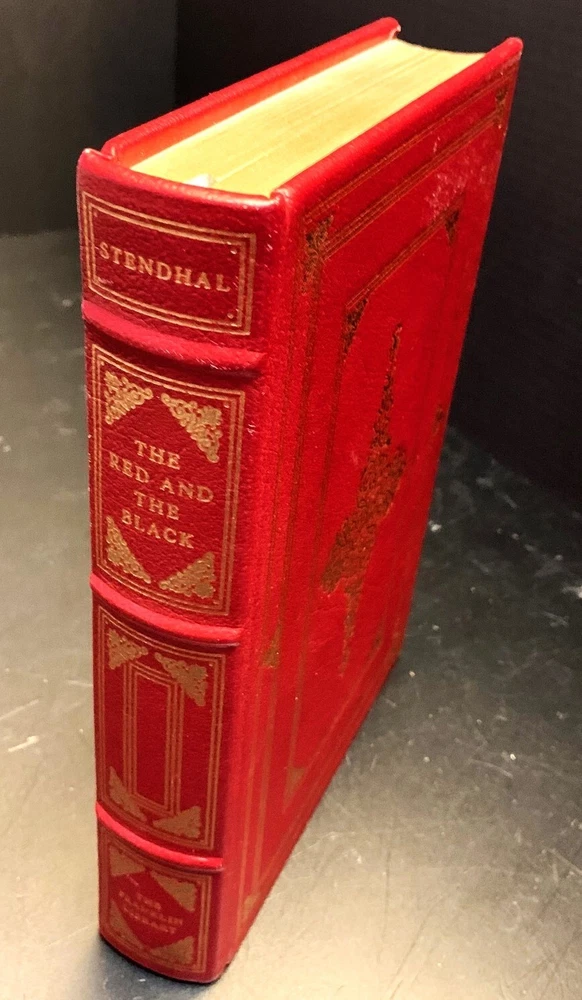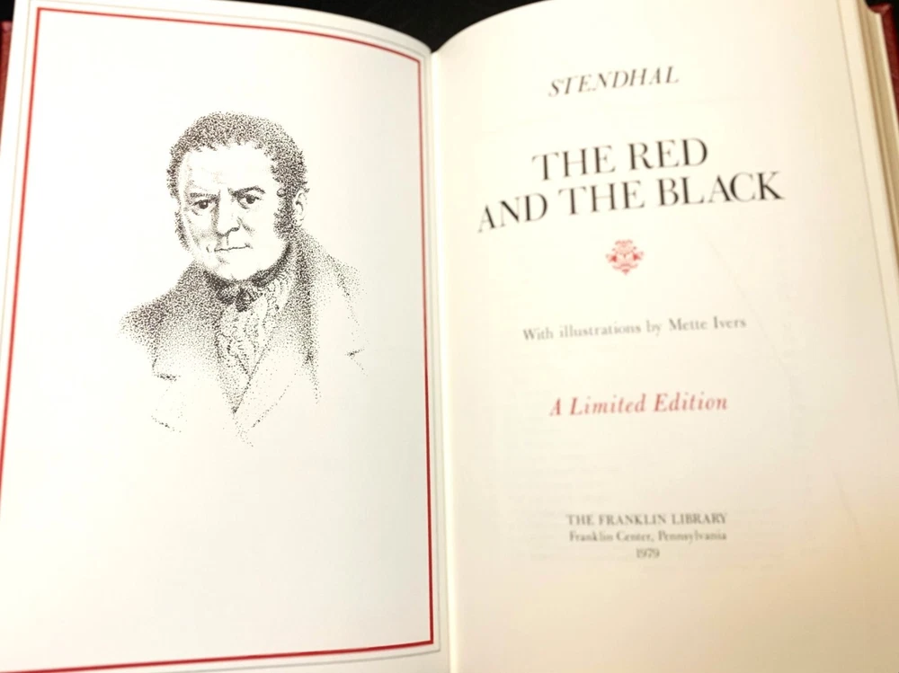 THE RED AND THE BLACK by Stenghal with Illustrations by Mette Ivers Franklin Library Collection of The 100 Greatest Books of All Time The Franklin Library, 1979, A Limited Edition, Full Leather. Bound in fine leather with gold lettering and decoration, gilded page edges (all three sides); raised spine hubs; sewn-in ribbon marker; high-quality paper; silk moire endpapers; sewn pages for strength and durability. Very Good Condition: Red leather-bound hardcover with gold lettering and decoration, attached ribbon bookmark, silk moire endpapers. No markings, a few light scratches on gilded page edges, corners very lightly bumped, edges of silk moire endpapers tanned. Ships by USPS media rate mail which typically takes 5-12 business days to arrive. Track Page Views With Auctiva's Counter