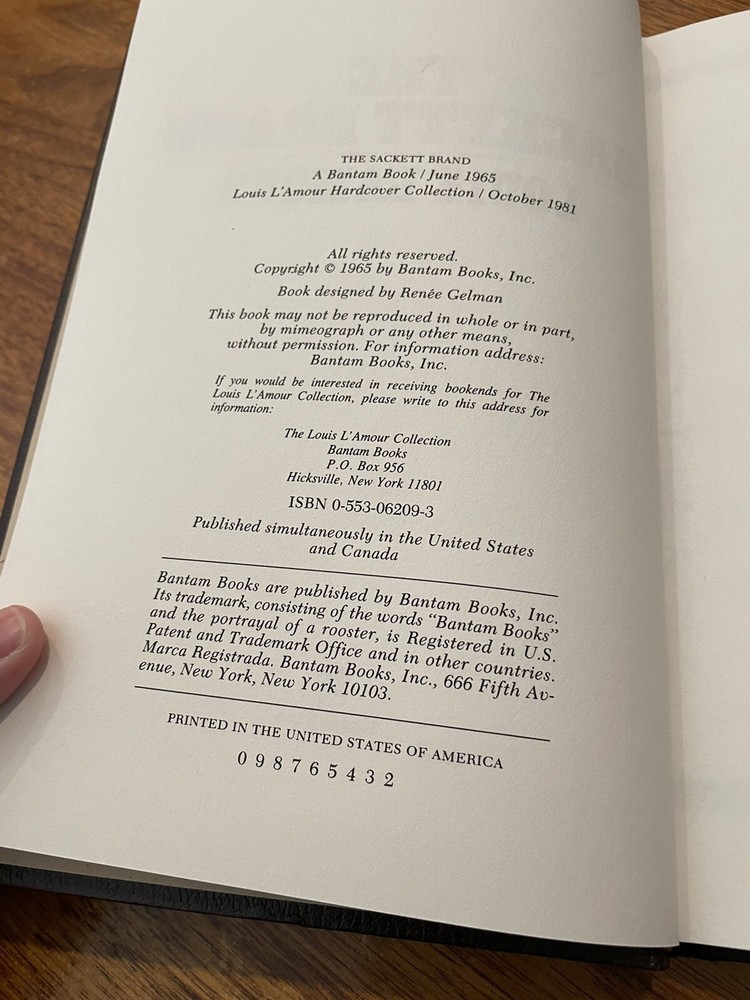 Experience the wild west with "The Sackett Brand" from The Louis L'Amour Collection. This leather-bound hardcover edition published by Broadway Books in 1985 is a must-have for any western fiction enthusiast. The book contains 224 pages of captivating storytelling by the renowned author Louis L'Amour. The book is in very good condition and features illustrations that add to the overall reading experience. It is perfect for collectors and those who enjoy regional and ethnic Italian cooking. Get your hands on this classic novel today!