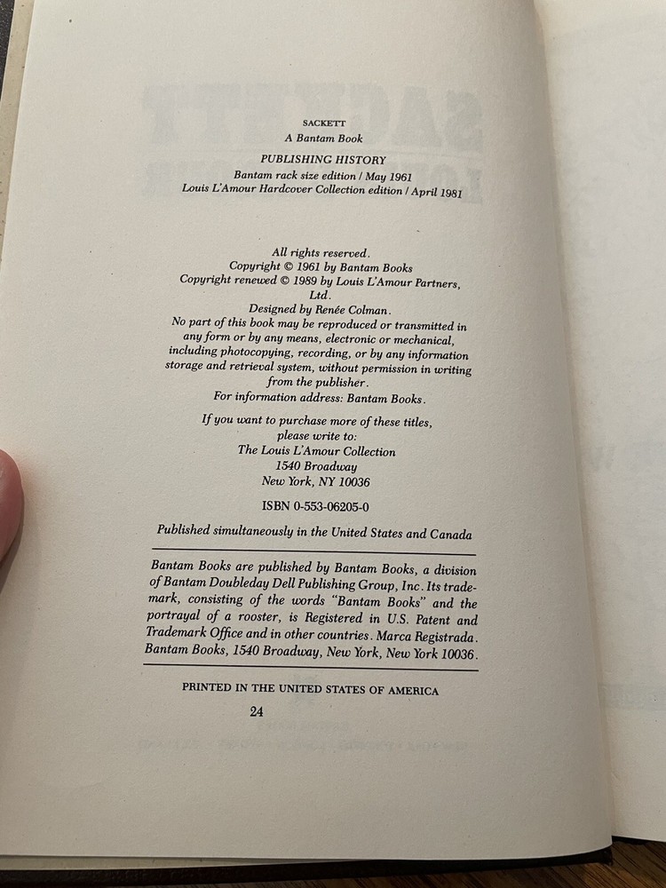 Immerse yourself in the captivating world of Louis L'Amour with "The Sackett Brand," a beautifully leather-bound edition from The Louis L'Amour Collection. Published in 1985 by Broadway Books, this hardcover piece boasts 224 pages of regional and ethnic Italian cooking, perfect for any food enthusiast or lover of classic literature. Featuring illustrations that bring the story to life, this book is a treasure for any collector or fan of L'Amour's work. The English language book is in very good condition and is sure to make a great addition to your collection.
