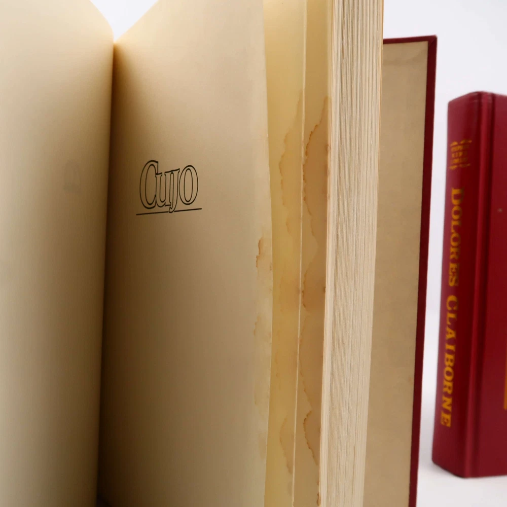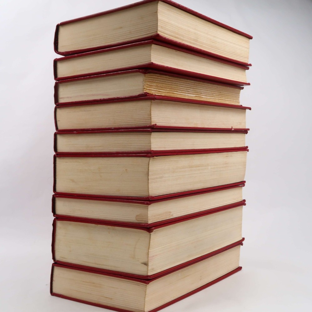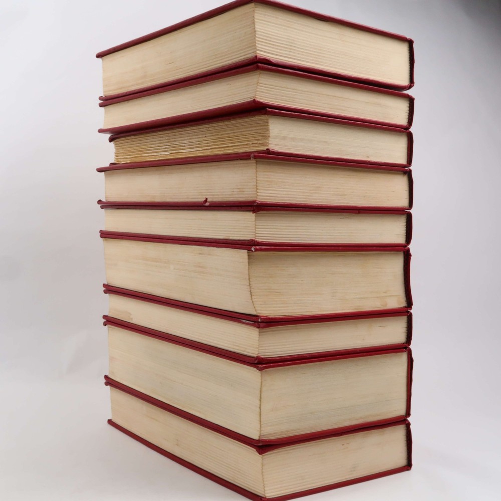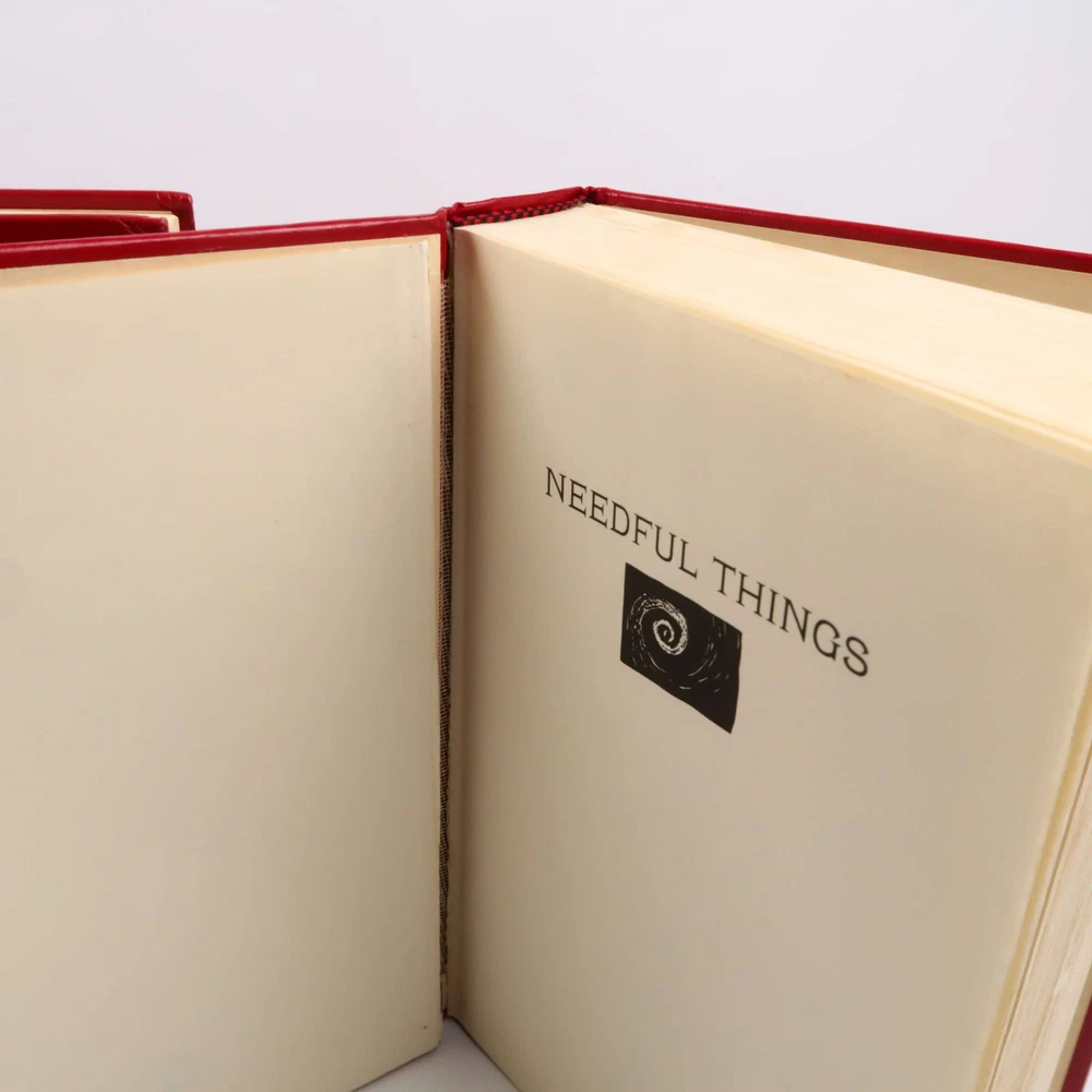presents ... The Stephen King Library - Red Leather-Bound Vintage Horror HC, 9 Book Lot Author: King, Stephen Publisher: The Viking Press Release Date: Seller Category: vinhor Qty Available: 1 Condition: Used: Acceptable Sku: 121824014 Notes: This listing is for nine Stephen King Library editions. The pictures included are of the actual books for sale and can be viewed for assessing condition. Needful Things' first signature has separated from the spine; Cujo and Christine have liquid staining/rippling. All purchases are shipped or made available for local pickup within one business day of payment. All Photos are of the actual book(s) up for sale. Please message about any problems with your order or other concerns, including requests for additional photos or clarification on any condition notes. Ask about combined shipping before checkout. Thank you for your interest.