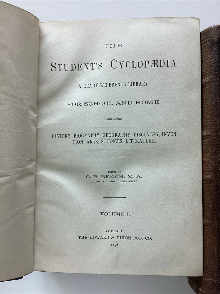This is a rare find for book collectors and enthusiasts alike. The Student's Cyclopedia Vol 1 & 2 Book Set is a beautiful addition to any library. Published in 1898 by The Howard & Dixon Publishing Company, this set is bound in high-quality leather with gold lettering detail. Containing an A-Z list of topics and subjects, this set is a valuable reference for anyone interested in history, literature, and the arts. Whether you are an avid collector or simply looking for a unique addition to your bookshelf, this set is sure to impress. Very good condition for its’ age. Please see pics for details. Economy shipping/Media mail shipping only. Please ask any questions prior to bid or purchase. Small business owner here and returns or refunds greatly impact my business. Thank you for looking and purchasing.