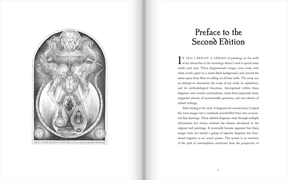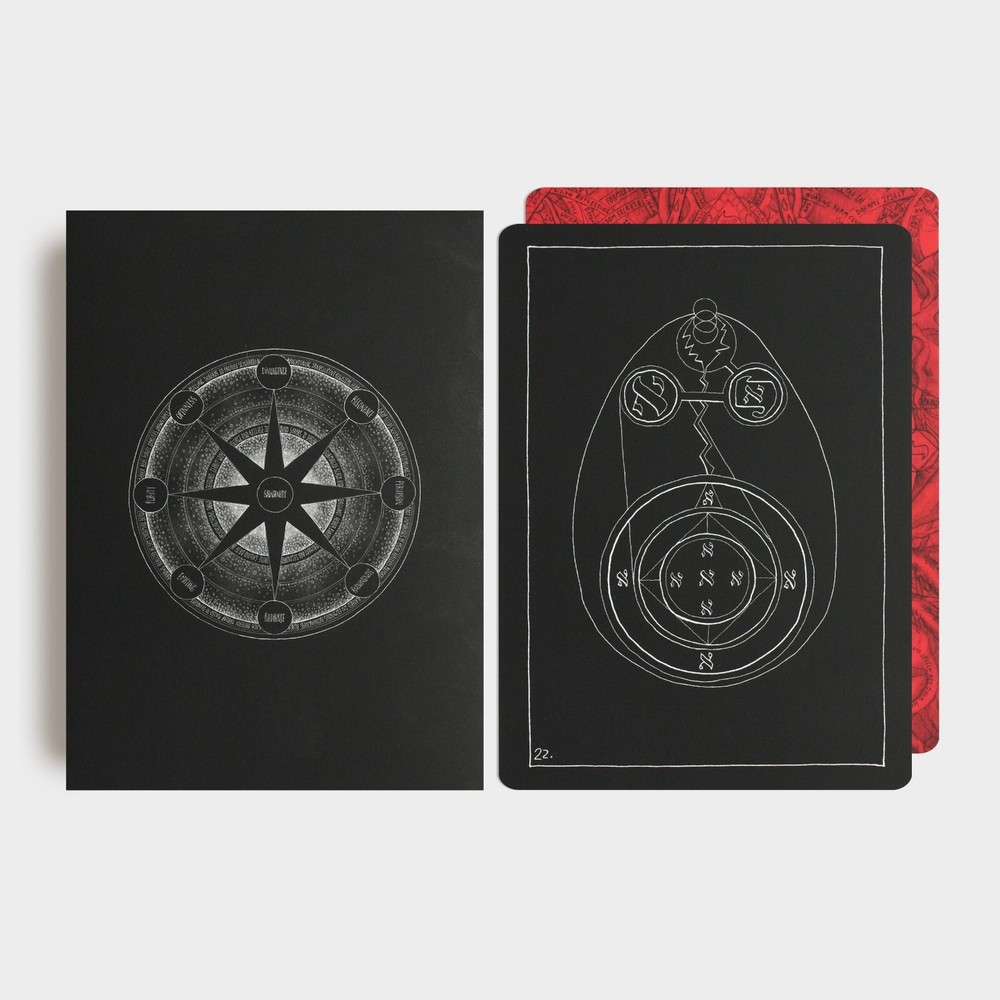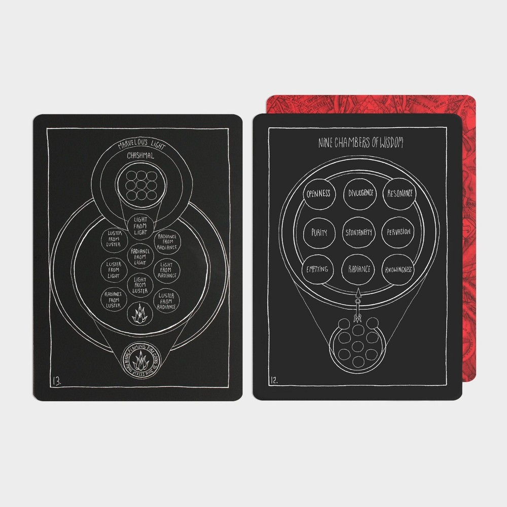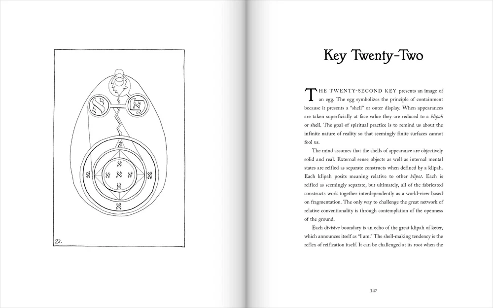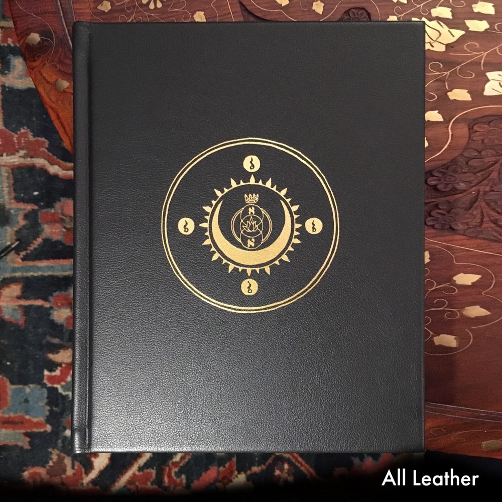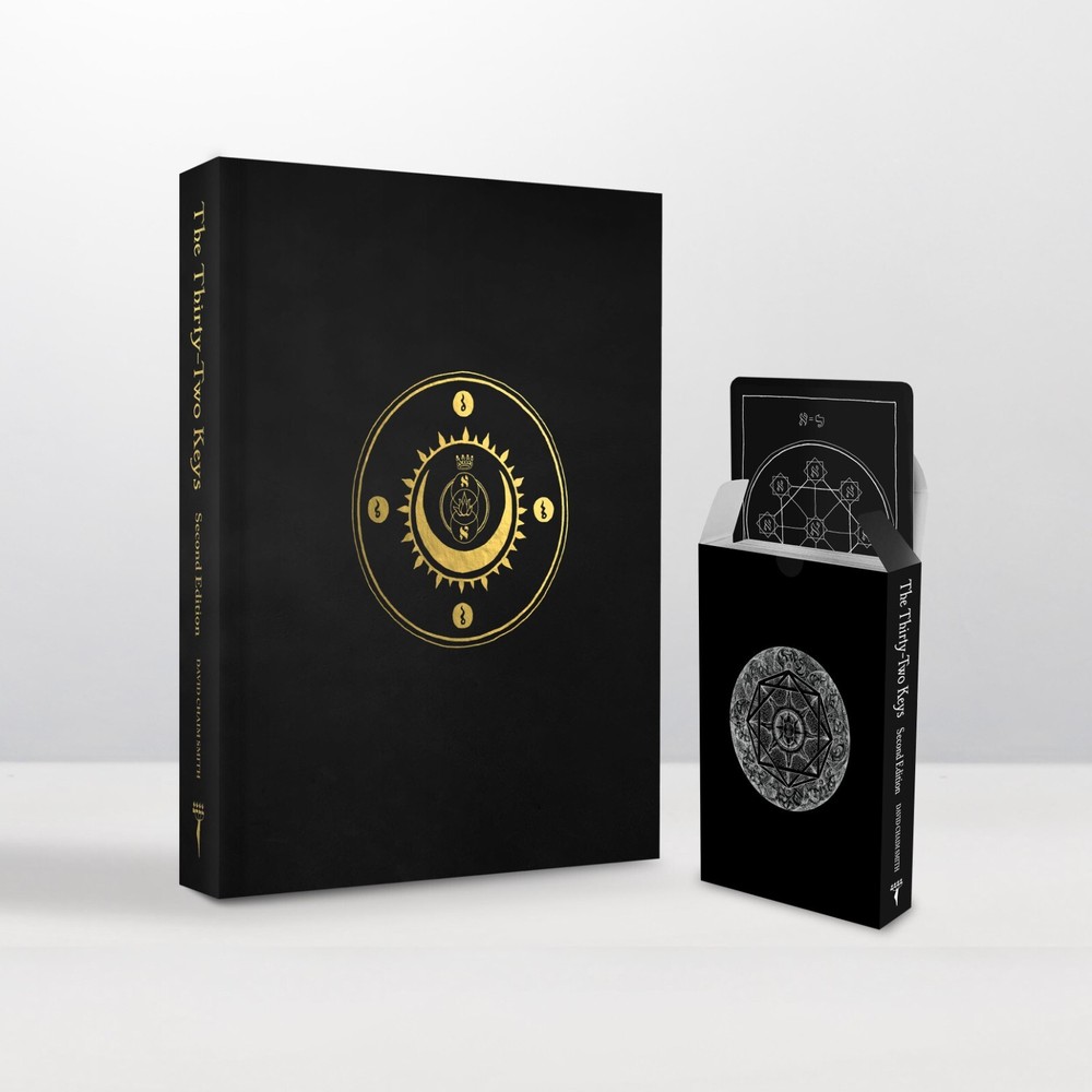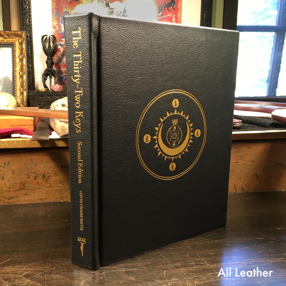 The Thirty-Two Keys deluxe second edition is the first deluxe book made for the Lightning Flash of Alef series. Seventy exemplars are bound in genuine cowhide leather, signed and numbered as an edition of 1–70. The raven black all-l eather cover is blocked with a seal from the cards in metallic gold. The Thirty-Two Keys , the 3rd volume from the Lightning Flash of Alef series, is a group of symbolic images that provide an overview of the non-emanationist interpretation of the Kabbalah based on sources that span eight centuries. The images support a set of contemplative exercises configured for a 288-day period and serve as an introduction to the greater path of mysticism in all its forms. Beyond its introductory role, The Thirty-Two Keys is a powerful tool for contemplation at any point on the path and is absolutely unique in the literature of the Western Esoteric Tradition. This second edition has profoundly refined the original material and extensively reworked both the text and the images to make the content clearer and more accessible than ever. Deluxe all-leather issue Genuine cowhide leather binding 8x10 hardcover book Smyth sewn Blocked in gold metallic Custom endpapers 40 images 212 pages Includes a deck of 32 contemplation cards
