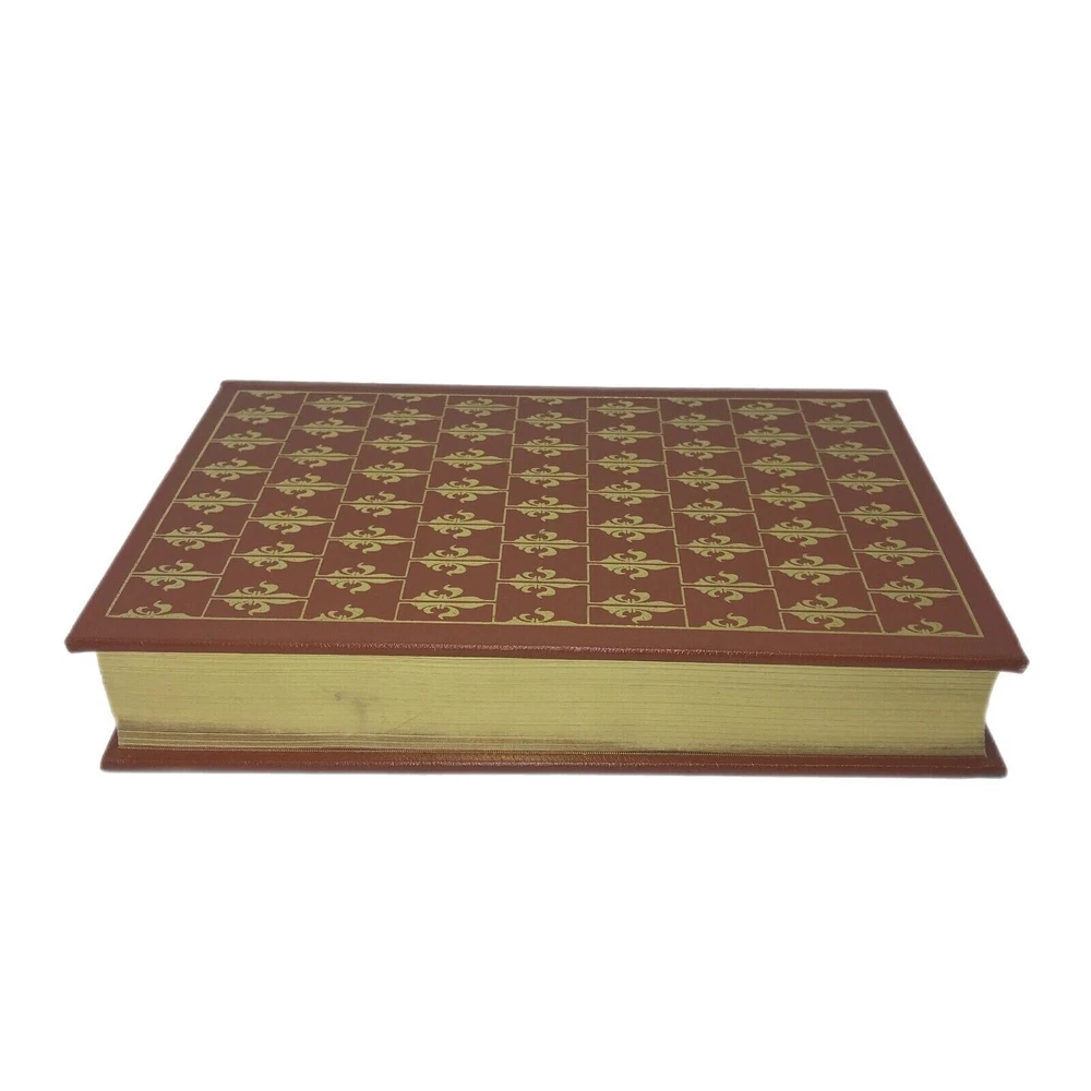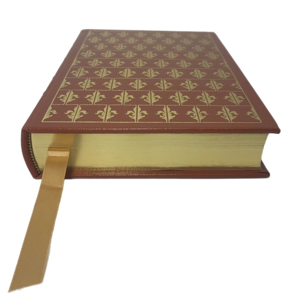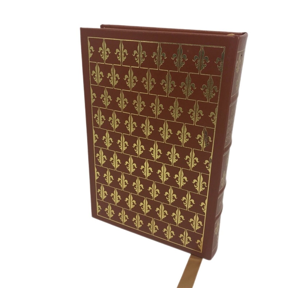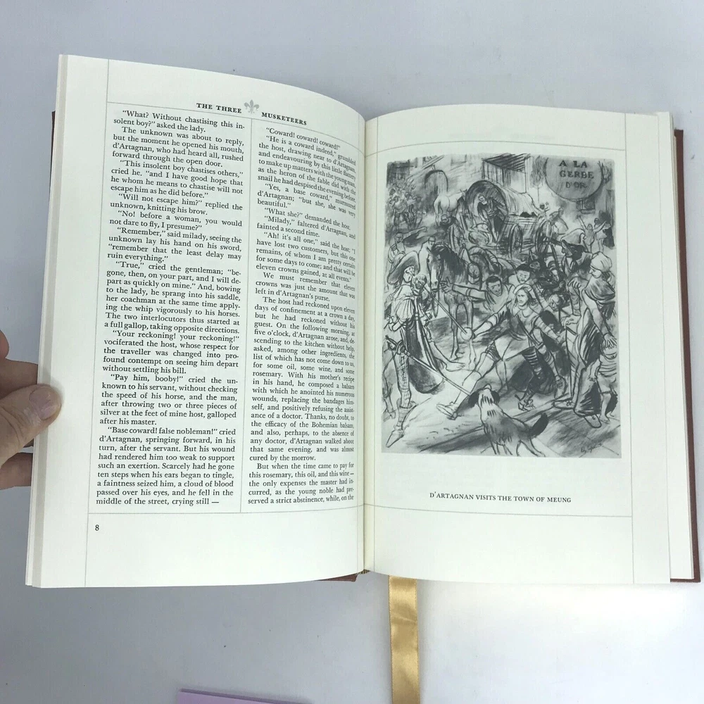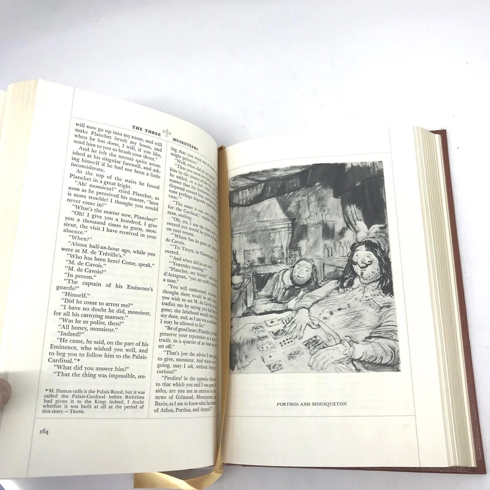 The Three Musketeers: Alexandre Dumas. Easton Press. Leather. Collector Ed. 1978 Comes in manufacturer's original shipping container Deep dive into Alexandre Dumas' swashbuckling historical adventure tale of honour and chivalry, set during the backdrop of the French monarchy’s slow demise, The Three Musketeers. Kickstarting the epic trilogy, ´The Three Musketeers´ follows D’Artagnan's desperate attempt to leave home and join the elite Musketeers of the Guard in Paris. When he befriends three other formidable musketeers his age, the group soon take it upon themselves to save the state and control the courts! But when rogue do-gooders step on the toes of France’s Ancien Régime, there’s bound to be trouble. And violence. Will it be off with the heads? Or will the musketeers show France what a true republic looks like? Weaving a whirlwind adventure tale of courage and might, Dumas’ The Three Musketeers is a must-read masterpiece for fans of Luke Evans, Orlando Bloom, and Logan Lerman in the eponymous blockbuster hit film adaptation. Alexandre Dumas (1802- 1879) was a widely celebrated French author, member of the Académie Française, and recipient of the Legion of Honour. Celebrated for his rip-roaring adventure novel ‘The Three Musketeers’, his literary output includes ‘The Count of Monte Cristo', 'Twenty Years After' and 'The Vicomte of Bragelonne: Ten Years Later'. Gilt page edges Raised Bands Accented in 22kt gold Full Leather-bound Satin Bookmark Ribbon still in original position Silk Moiré End sheets Collectors edition
