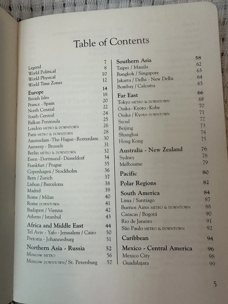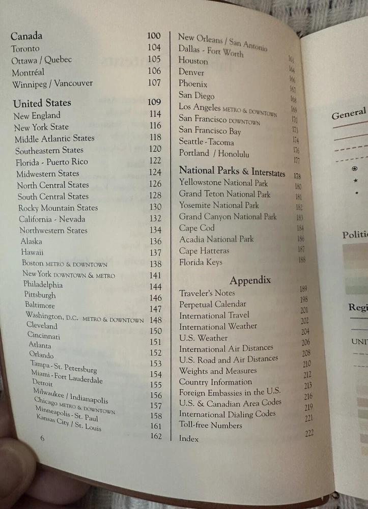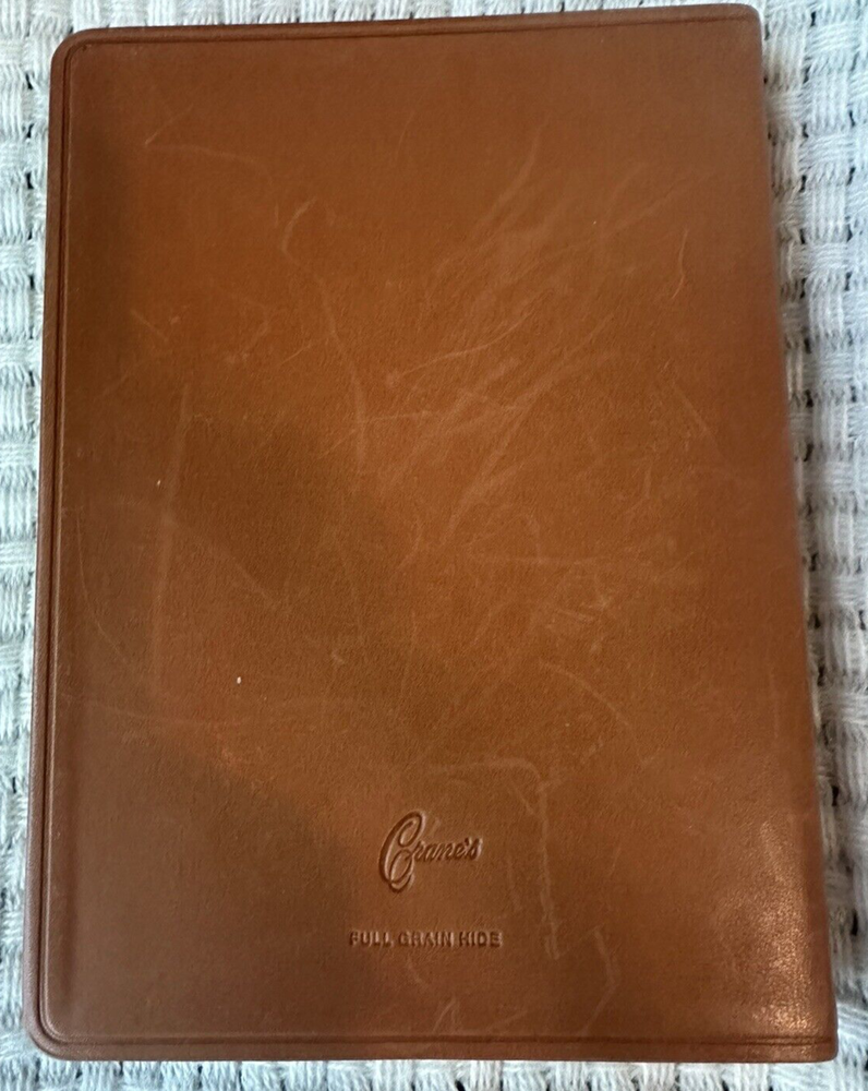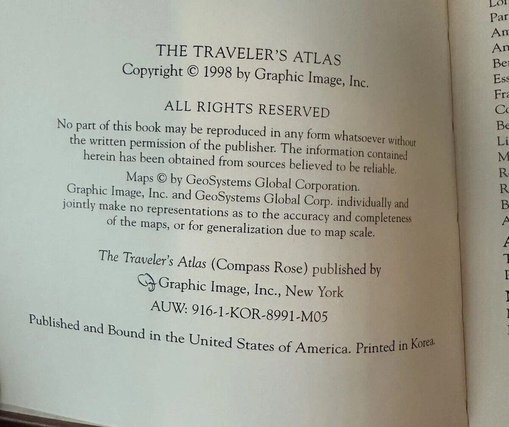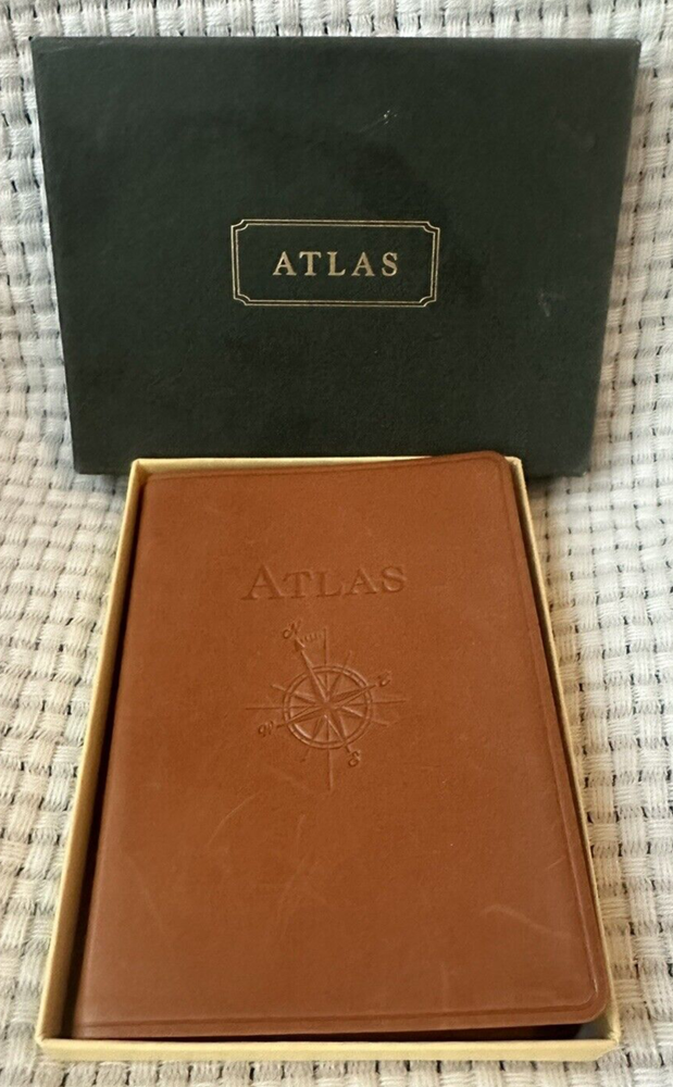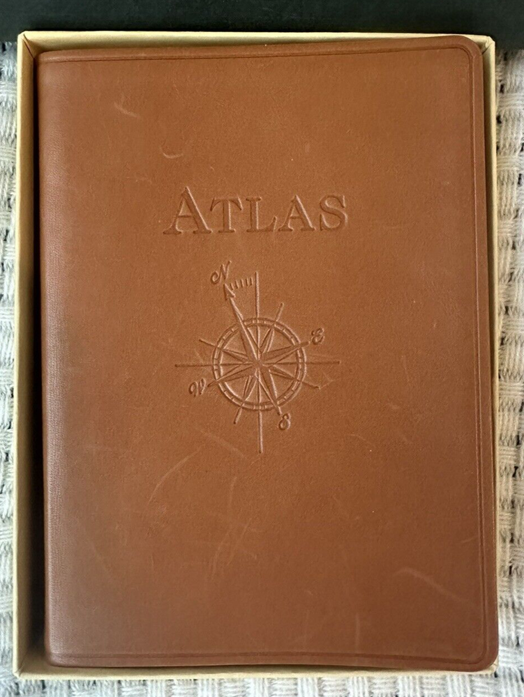 The Traveler's Atlas Leather Bound, Crane's Full Grain Hide Gold Edge Pages Box Included 1998 Good condition, cover has some scratch marks but leather is not torn or cut, front and back(blank pages) have some spotting, box has a dark ring on it-SEE ALL PICTURES Published and bound in the United States, printed in Korea Sold as shown