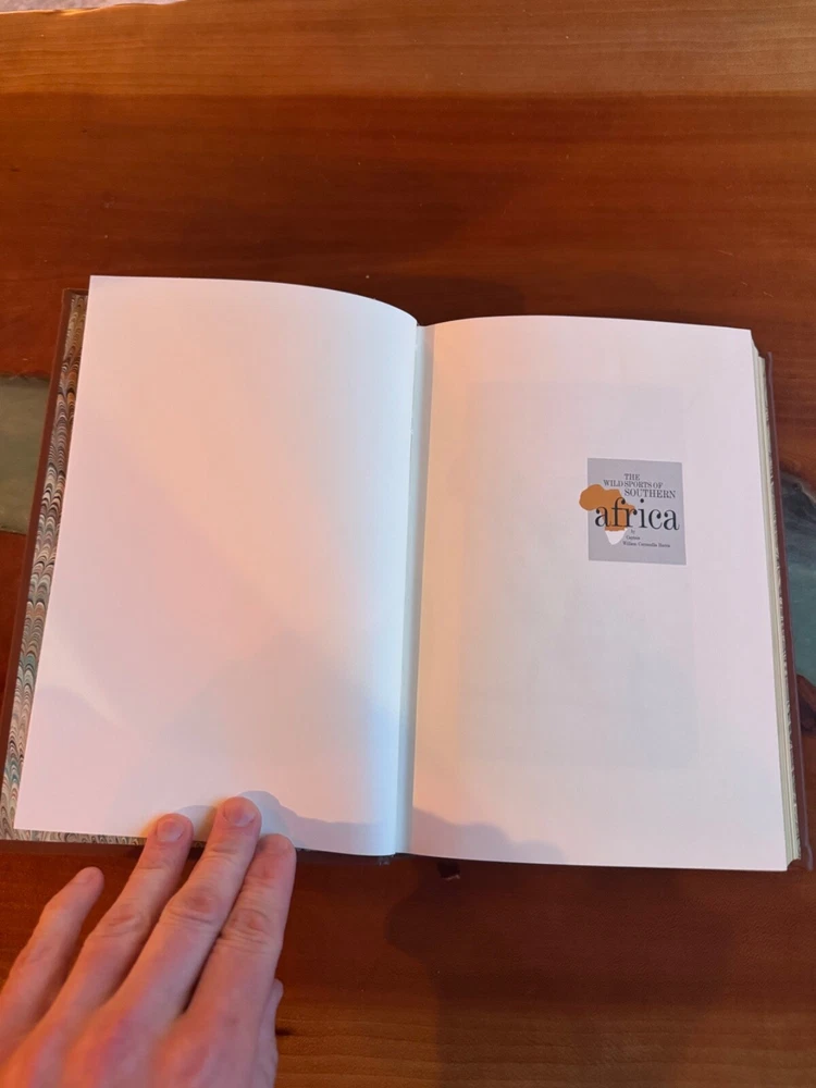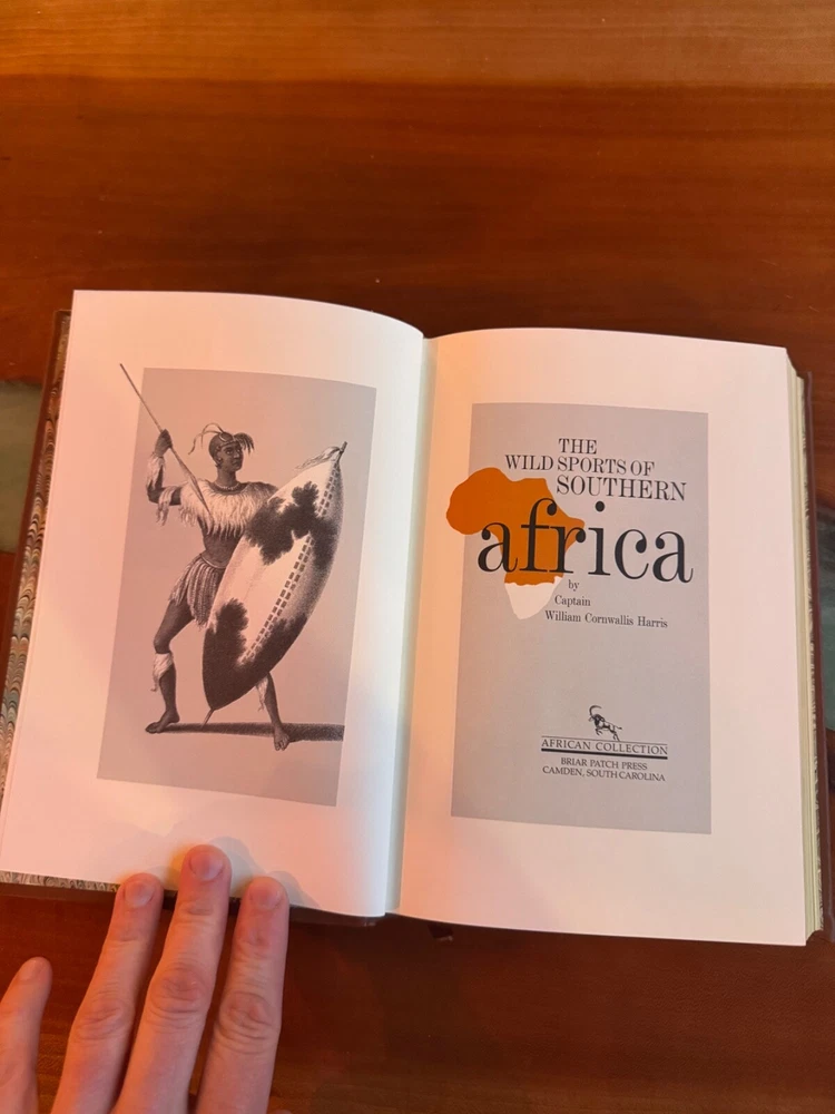 The Wild Sports of Southern Africa by William Cornwallis Harris – Deluxe Leather-Bound Edition This is the highly collectible Briar Patch Press leather-bound edition (1987) of The Wild Sports of Southern Africa by William Cornwallis Harris, widely regarded as the first true safari book and a cornerstone of African hunting literature. Bound in fine leather with gold gilt page edges, this edition is both handsome and durable-a standout addition to any Africana or sporting library. Harris’s narrative chronicles his groundbreaking 1836–37 expedition from the Cape of Good Hope through the territories of Chief Moselekatse to the Tropic of Capricorn, capturing the thrill of big game hunting and the adventure of exploring uncharted landscapes. Condition: Excellent. Features: Full leather binding, gold gilt page edges, and illustrated. Collector’s Note: Highly sought after by collectors of classic African exploration and hunting books. A distinguished and beautiful volume for any collector or enthusiast of African adventure. Detailed Contents Summary “The Wild Sports of Southern Africa” by William Cornwallis Harris is a landmark account of one of the earliest and most influential hunting expeditions in Africa. First published in 1839, the book details Harris’s journey from India to the Cape of Good Hope, and then northward into the wild interior of southern Africa-a region then virtually unknown to Europeans. The narrative follows Harris and his companions as they traverse the territories of the Chief Moselekatse to the Tropic of Capricorn, encountering a landscape teeming with wildlife and rich in adventure. The book is structured as a travelogue, with chapters covering each stage of the journey: from initial preparations in Graham’s Town and Graaff Reinet, to crossing the Great Orange River, reaching Kuruman, and venturing deep into Bechuana and Matabele lands. Harris provides vivid accounts of hunting quagga, eland, ostrich, white and black rhinoceros, elephant, buffalo, hippopotamus, giraffe, sable antelope, and lion. He describes thrilling pursuits, dangerous encounters-including being deserted by his escort, getting lost in the wilderness, and surviving a lion attack-and the discovery