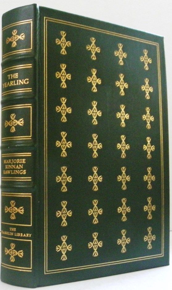 This is full genuine leather bound in new and sealed condition, never opened or read. The second photo is for exemplification only. For the ultimate historical immersive experience I shall be using the original shipping box, just as you would have received it from the Franklin Library itself. This is a treat of the rarest kind! This book is the perfect find, perhaps the last one to be found in original wrapping. It laid in waiting for nearly 40 years to find its unique loving owner. Note ( condition check ): addressing concerns from some buyers, I can confirm the book's condition by opening the box, upon commitment to buying it, should the book reveals itself to be as pristine as I expect it to be. 'The Yearling' by Marjorie Kinnan Rawlings is one of Franklin Library's ‘Pulitzer Prize’, with wonderful attributes: •Fully and tightly bound in genuine leather. •22kt gold accents deeply inlaid on the "hubbed" spine and covers. •Heavy duty binding boards enhance the book’s durability. •Superbly printed on acid-neutral paper that lasts for generations. •Sewn pages – not just glued like ordinary books. •Handsome moiré end pages and a satin-ribbon page marker. •Gold gilded page ends. •Rigorous inspection at every stage ensured adherence to exacting standards and the highest quality. •Superb craftsmanship and commitment to quality. The appeal for collecting Franklin Library comes from having these attributes taken way further into the exquisite quality, durability and craftmanship, than Easton Press and Folio Society managed with their productions. This book is the perfect companion out on a park bench with a hot cup of coffee or snuggled up in front of the fireplace. Despite its all-inclusive nature it still feels very light and compact at a size of 4 x 16 x 24cm. Wonderful to hold and excellent reading experience.