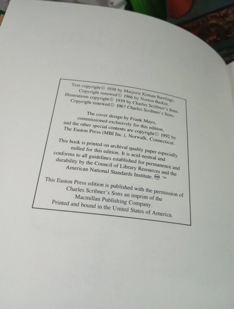 This Easton Press edition of *The Yearling* is absolutely stunning! The rich green cover and gold accents make it a beautiful collector's piece. The story itself is timeless—heartwarming and heartbreaking in equal measure. The high-quality binding and paper ensure it will last for generations. A must-have for any serious book lover!