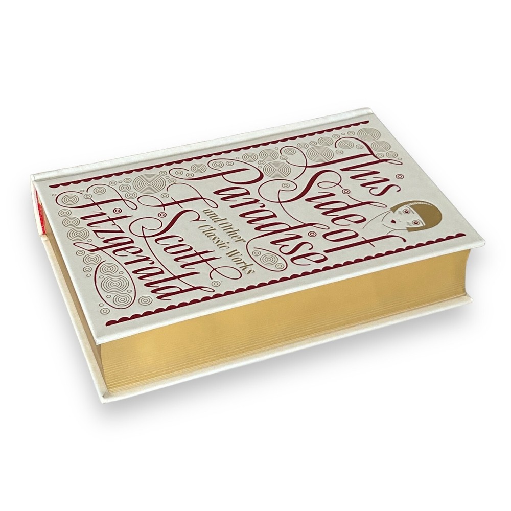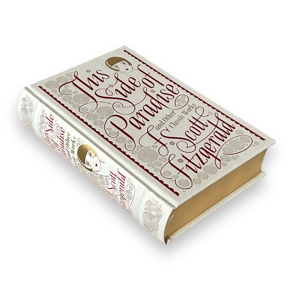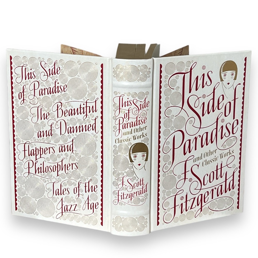 This Side Of Paradise & other F. Scott Fitzgerald Collectible Leather Bound Book Featuring a beautifully stamped bonded leather cover, gilt edging, colorful endpapers, and a satin-ribbon bookmark, this collectible edition is a fine addition to any home library. No writer portrayed America's Roaring Twenties as vividly as F. Scott Fitzgerald. In his effervescent tales of elegant ingenues on the prowl for husbands, Ivy League heirs en route to futures of idle entitlement, and endless alcohol-fueled dance parties at ritzy country clubs, he limned a culture giddy with excess and as reckless as it was refined. Gifted with remarkable powers of observation and a witty way with words, Fitzgerald wrote stories that seem as fresh and modern today as they did when published nearly a century ago. This Side of Paradise and Other Classic Works features two full-length novels— This Side of Paradise and The Beautiful and Damned —and 19 short stories, including the classics "Bernice Bobs Her Hair," "The Diamond as Big as the Ritz," and "The Curious Case of Benjamin Button." Written as only they could be by an insider to the society that they portray, the 21 works collected in this volume capture the precarious splendor and doomed glory of that opulent era that their author called the Jazz Age. Dimensions: 6.60(w) x 9.40(h) x 2.00(d)